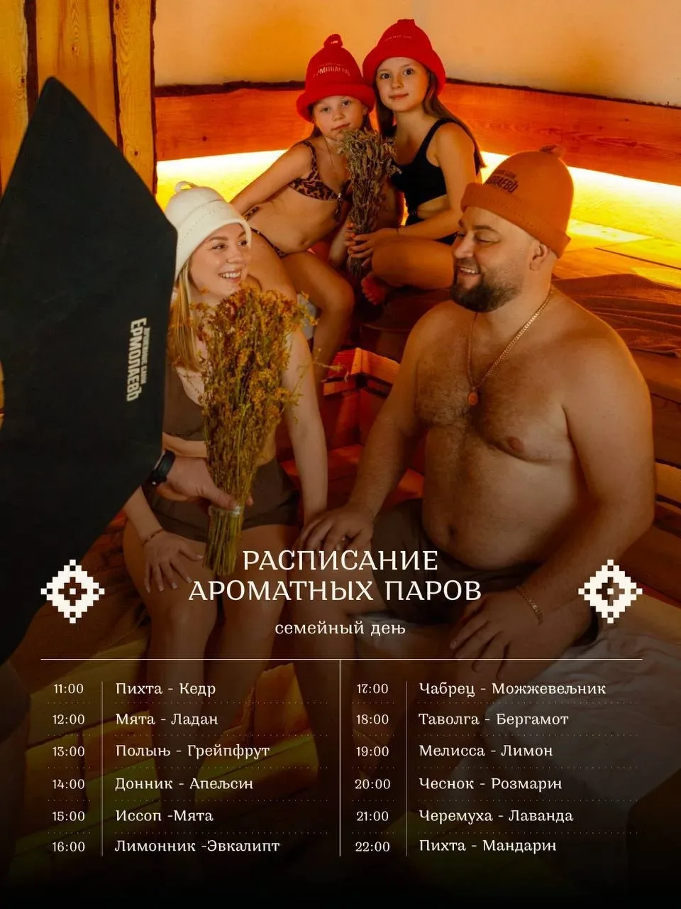 Бронь: https://823074.restoplace.ws/ Подарочный сертификат: https://ermolaevbani.ru/gifts?utm_source=max Ждем вас каждый день с 10:00 до 23:00 +7 (345) 260-08-08 По-настощему Ваши бани: - Мужской и женский разряд - Аром…