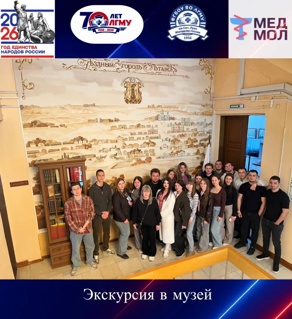 #ГодЕдинстваНародовРоссии Экскурсия в музей 🔥07.04.26 сотрудниками кафедры инфекционных болезней и эпидемиологии им. В.М. Фролова, под руководством профессора Я.А. Соцкой, была организована экскурсия студентов 19-А и 19-Б групп 4 курса стоматологического факультета в Музей истории Луганска. 🔥Студентам представили историю города, начиная с 1795 года – момента его основания и до Великой Октябрьской социалистической революции, а также многочисленные экспонаты, среди которых наибольший интерес вызвали предметы быта конца Х1Х начала ХХ столетия – личные вещи первого городского головы Луганска Нико…