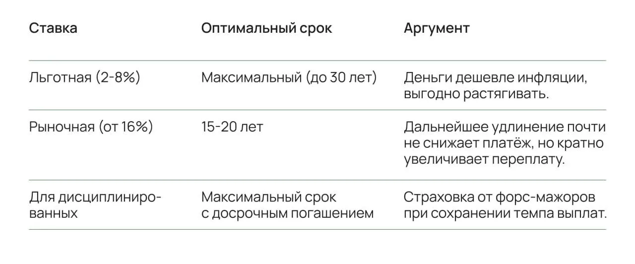 🤑 На какой срок выгоднее брать ипотеку? Все зависит от вашей ипотечной ставки: Ситуация 1. У вас льготная ипотека под 2-6-8% ⏩берите кредит на максимально возможный срок (30 лет). ➖ Ставка находится на уровне инфляции или даже ниже ее. Деньги в экономике обесцениваются быстрее, чем банк начисляет вам проценты. ➖ Взяв ипотеку на 30 лет вместо 15, вы снижаете обязательный ежемесячный платеж на 30-40%. Если освободившиеся деньги положить на вклад под 12-14% или в облигации, вы легко заработаете на разнице ставок. Банк дает вам деньги под 6%, а вы их «продаете» рынку под 12-14%. Досрочно гасить т…