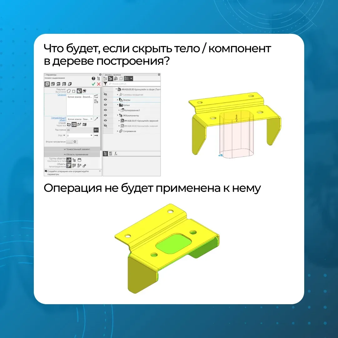 🔹Советы по КОМПАС-3D #компас_советы Показываем неочевидный способ управления областью применения операций 🔥 — если было полезно Остались вопросы? Присоединяйтесь к обсуждению в чате пользователей КОМПАС-3D👇🏻 🔗 Чат пользователей в Telegram 🔗 Чат пользователей в MAX