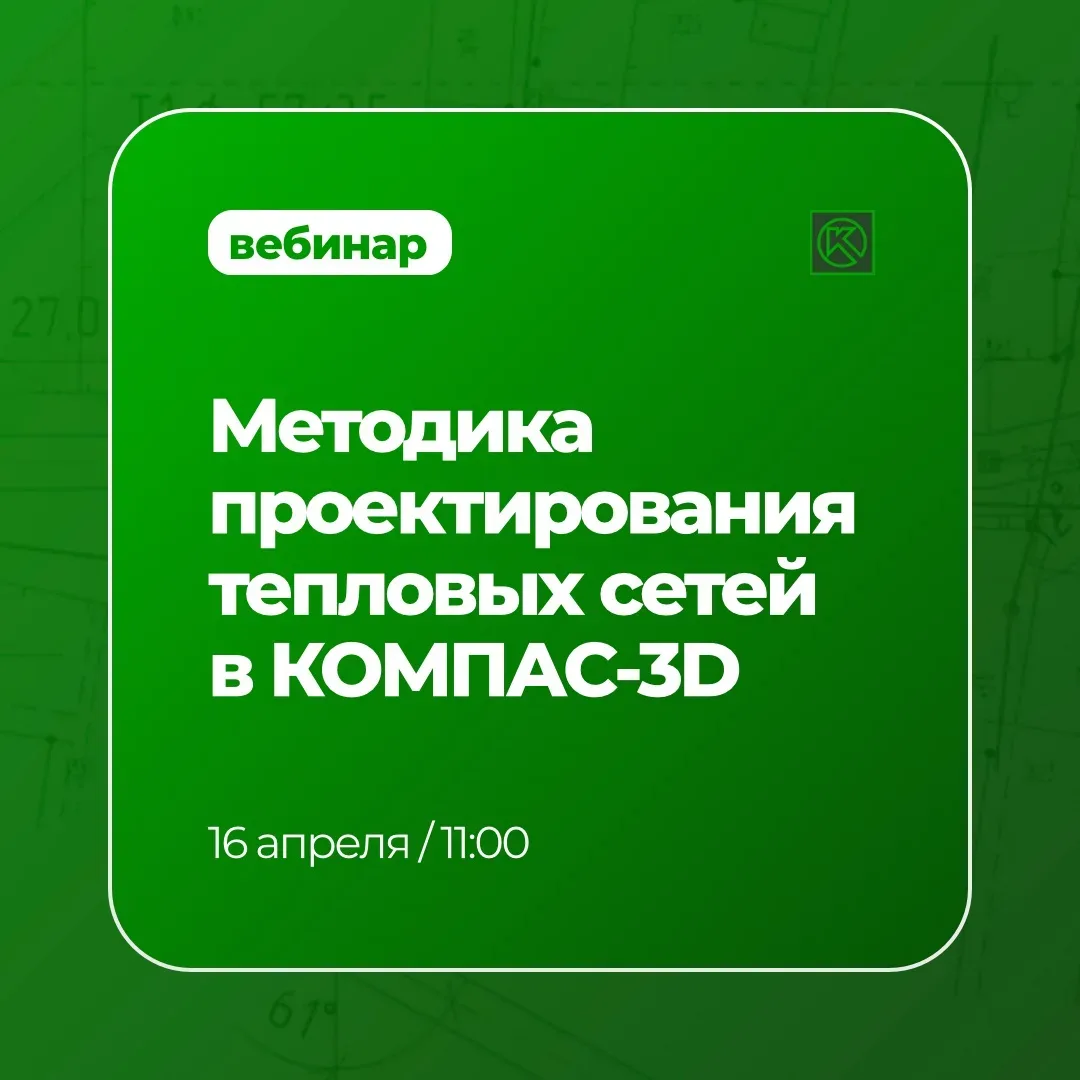 🚀 Вебинар через 15 минут! 🟩 Тема: Методика проектирования тепловых сетей в КОМПАС-3D — покажем, как автоматизировать проектирование тепловых сетей — рассмотрим процесс создания сетей и расстановку элементов на плане — продемонстрируем создание профиля и его корректировку — поговорим о функционале по работе с пересекаемыми объектами — расскажем, как настроить оформление сетей в плане — сформируем спецификацию, ведомость и выходную документацию — раскроем планы развития продукта — ответим на ваши вопросы 🏆 Каждый участник получит сертификат о прохождении обучающего онлайн-семинара ⏰ начало в 11…