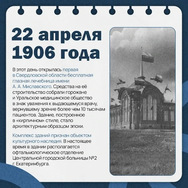 👀 Помог вернуть зрение более чем 10 тысячам пациентов Знаете ли вы, в честь кого названа Центральная городская больница № 2 в Екатеринбурге и что произошло 120 лет назад? Ответ — в нашей карточке! 🤝 #здоровье_96