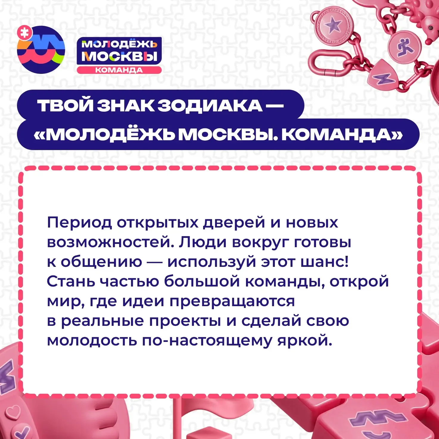 Будь в центре всех возможностей вместе с проектом «Молодёжь Москвы» Здесь ты не просто узнаешь о лучших событиях столицы, но и сам сможешь решать, какой должна быть Москва!