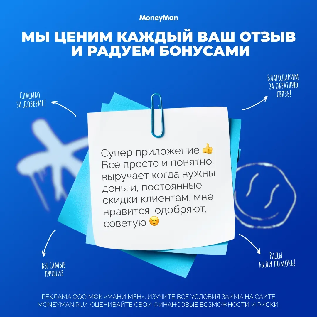 Здесь публикуются новости, промокоды и акции компании! Обратиться к нам по любым вопросам можно здесь: VK: https://vk.com/moneymanru Email: support@moneyman.ru Наш сайт: https://vk.cc/cUokgw