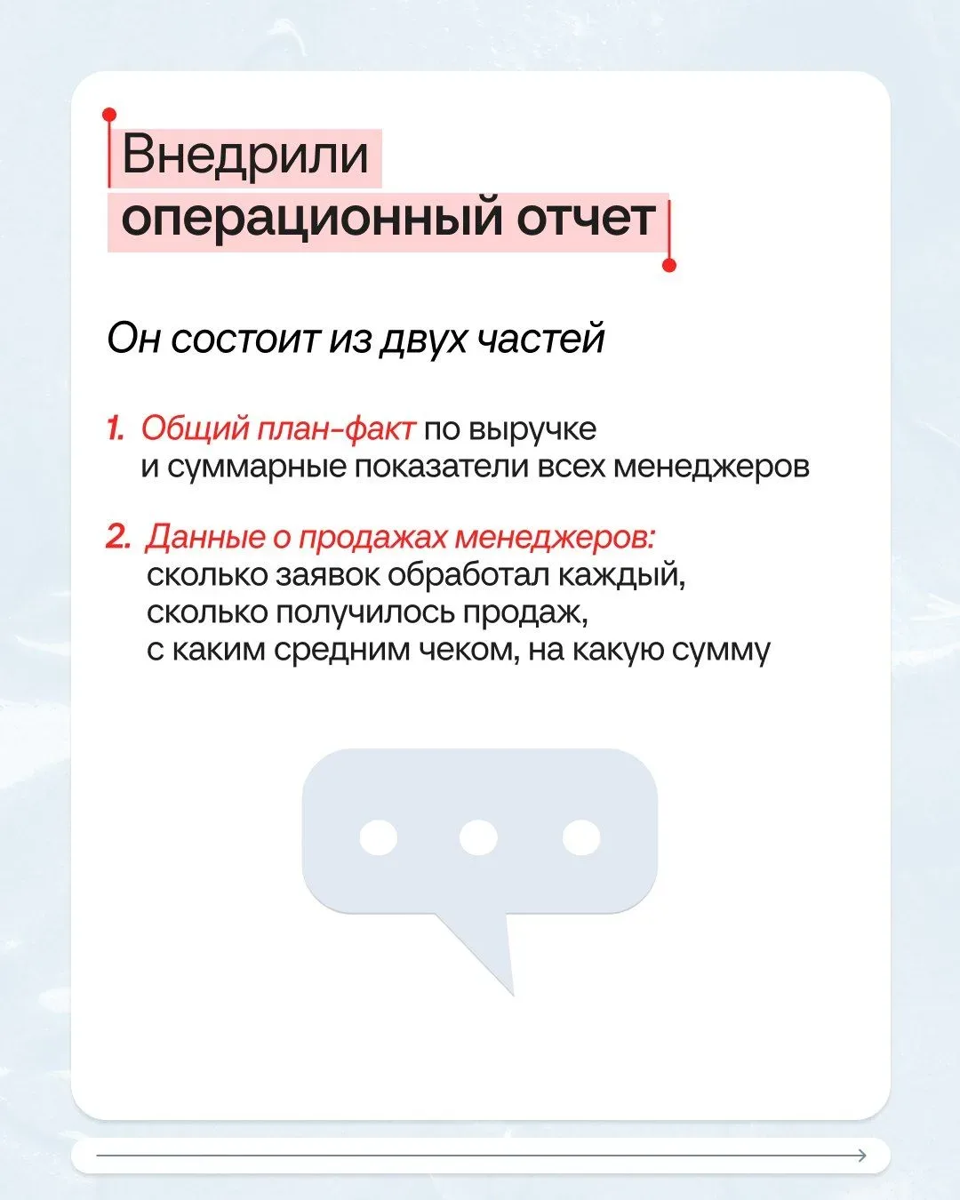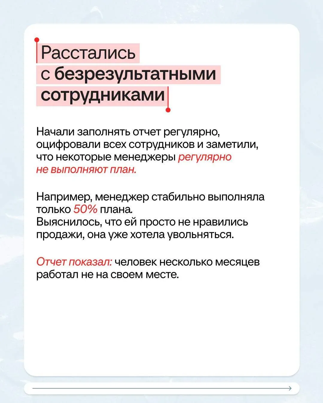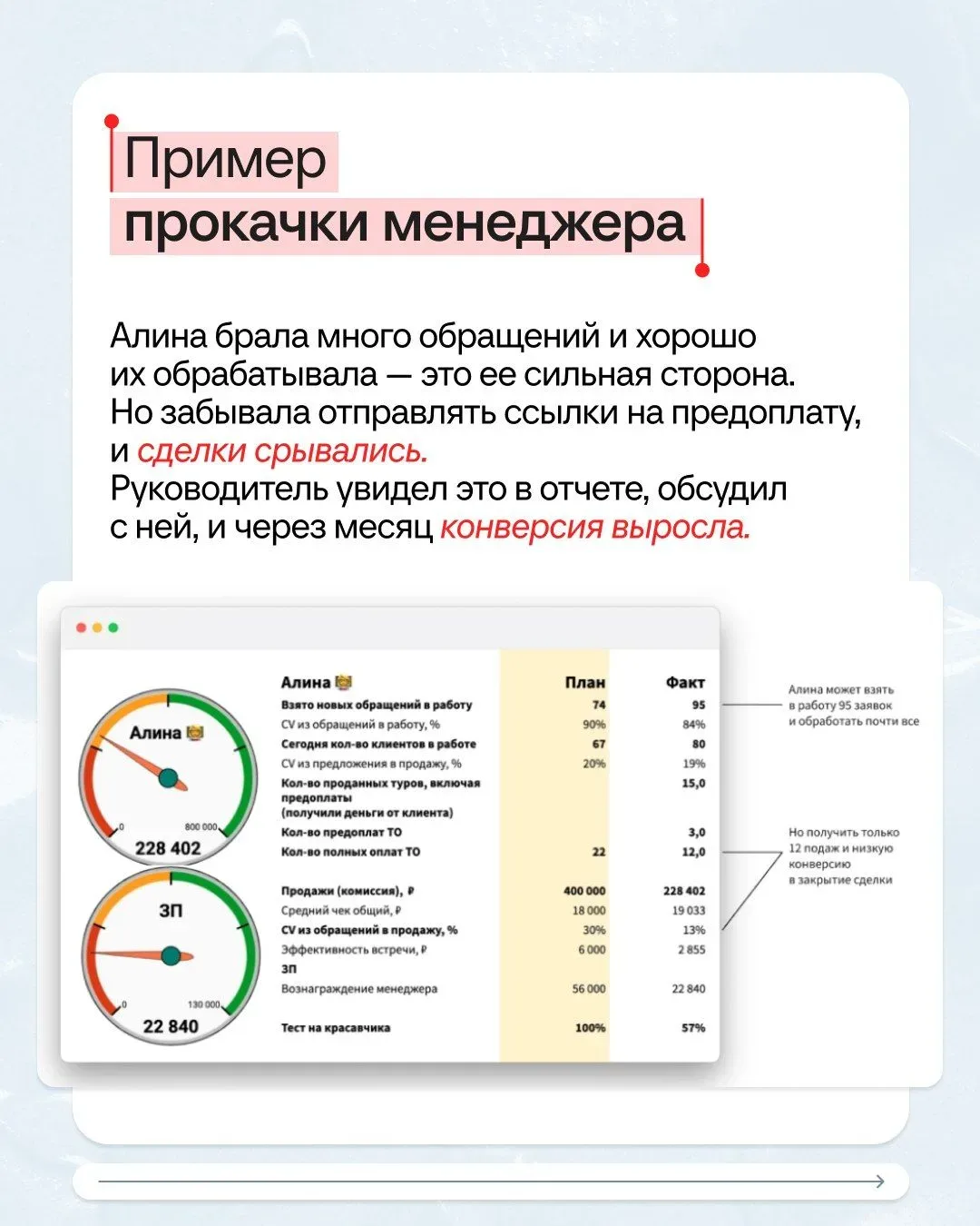 ⭕️КЕЙС⭕️ Собственник хотел 800 000 рублей в месяц, получалось — 300 000 рублей дивидендов. Решили! Клиент — туристическое агентство, больше пяти лет отправляет людей на отдых в разные страны. И все это время собственник недоволен: если повезет, дивиденды будут. Не повезет — придется жить на зарплату и отложить собственный отпуск на море 🐳 Исполнили мечту предпринимателя всего за 4 месяца и с помощью одного отчета. Как — читайте в карточках. Получите персональный план безопасного роста бизнеса бесплатно! Приходите на диагностику 7 сфер управленческого учета