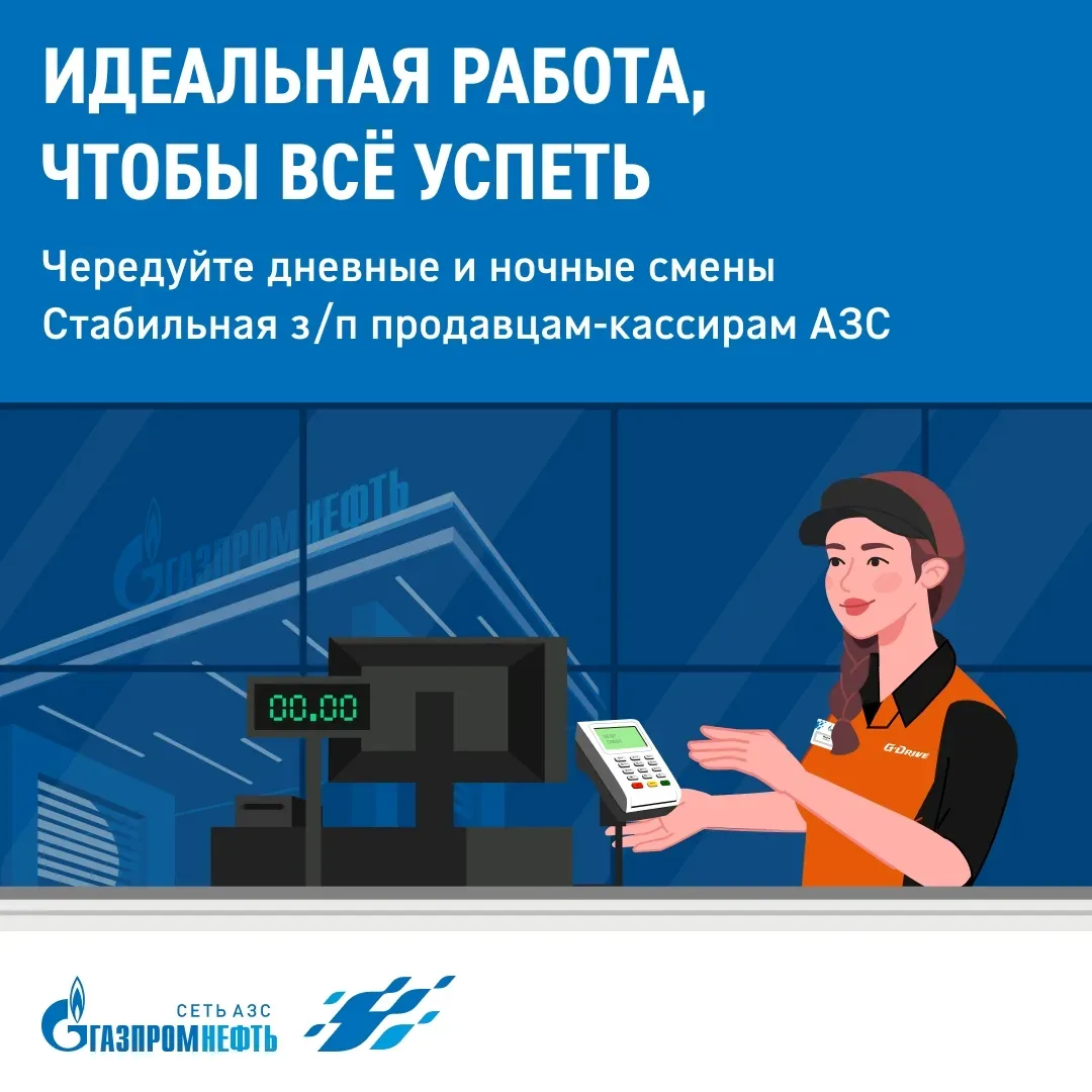 ⚡️ «Газпромнефть» — звучит солидно. Работайте продавцом-кассиром на АЗС в успешной крупной компании. Получайте до 46 000 ₽ + бонусы. Оставить заявку: clck.ru/3TDBs7 💙 Заботимся о сотрудниках: — Всё официально — Регулярные премии — Дневные и ночные смены — Расширенная ДМС со стоматологией — Отличный соцпакет и страхование — Скидки на питание на АЗС — Путёвки и подарки детям — Бесплатный медосмотр — Карьерный рост 👉 Оставить заявку: clck.ru/3TDBs7 Станьте частью дружного профессионального коллектива!