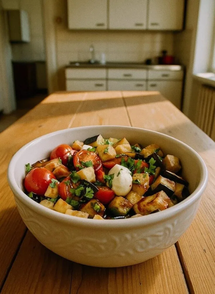 🍆 Этот салат — просто БОМБА! Хрустящие баклажаны, нежная моцарелла, свежие помидорки черри и ароматная кинза... 😍 💥 Один раз приготовите — и будете делать снова и снова, обещаем! 📌 Сохраняйте, чтобы не потерять — рецепт, который влюбляет с первого кусочка! 👩🍳 ИНГРЕДИЕНТЫ: • Баклажан — 1 шт. • Кукурузный крахмал — 3 ст. л. • Помидоры черри — 250 г 🍅 • Моцарелла — 100 г 🧀 • Кинза — 50 г 🌿 • Соевый соус — 3 ст. л. • Растительное масло — для жарки 🔥 ПРИГОТОВЛЕНИЕ: 1⃣ Нарежьте баклажан кубиком, обваляйте в крахмале — каждый кусочек должен быть в панировке! 2⃣ В глубокой кастрюле разогрейте масло …