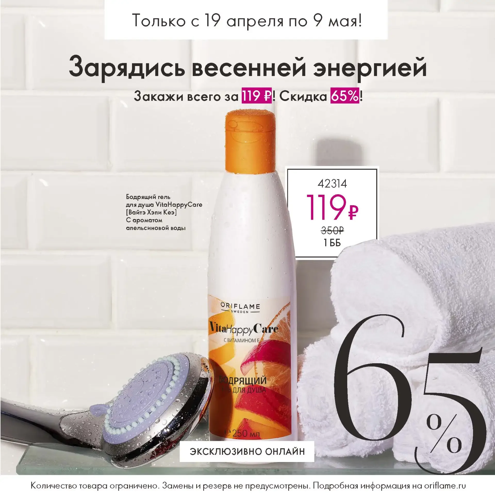 Эксклюзивно онлайн! Легкий гель для душа с витамином Е и бодрящим ароматом апельсиновой воды бережно ухаживает за кожей прямо в душе, превращая ежедневное очищение в ароматный ритуал заботы. ★ С 19 апреля по 9 мая включительно вы можете приобрести его всего за 119 рублей. Спешите заказать по ссылке https://clck.ru/3T7cr5