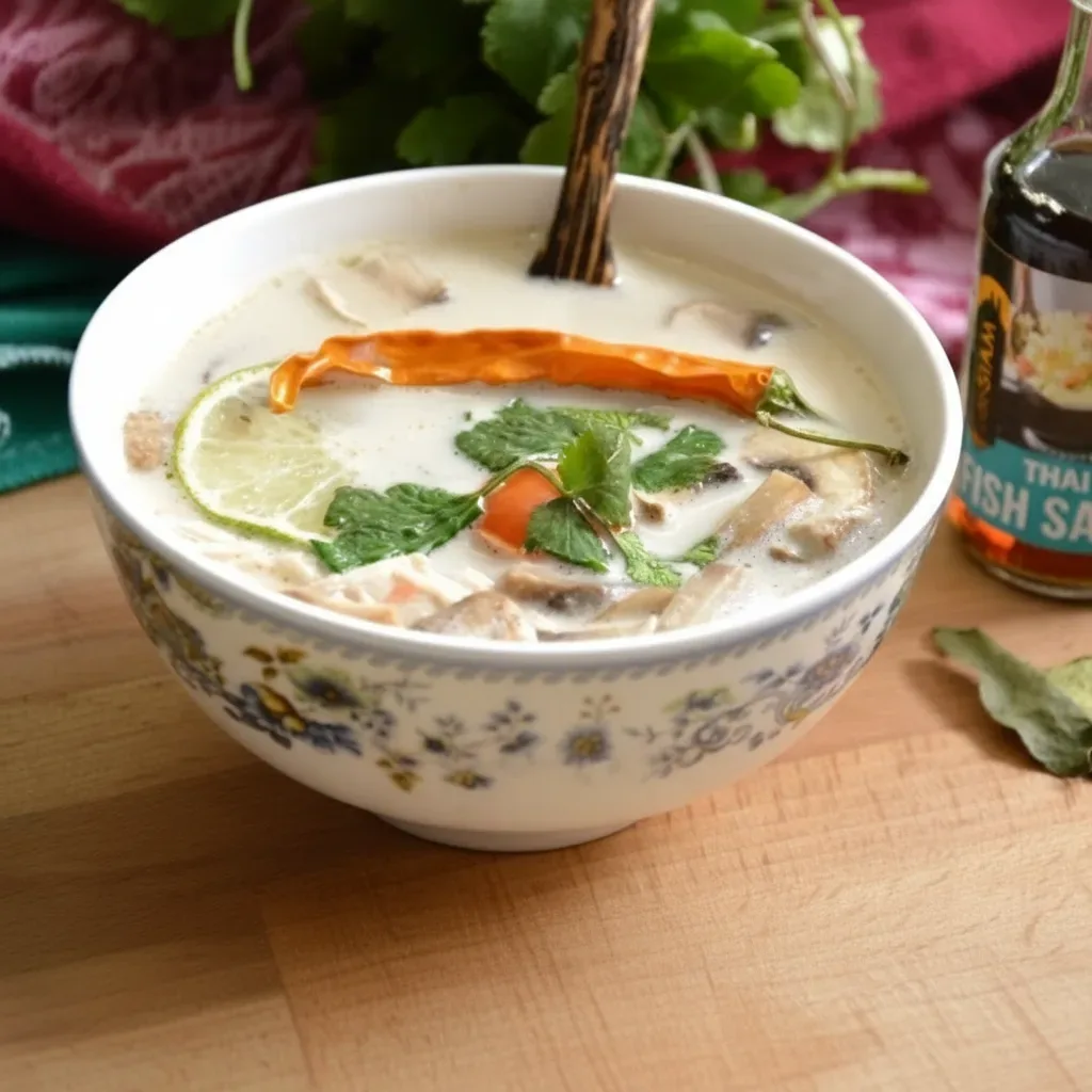ТАЙЛАНД Суп «Том Кха» Ингредиенты: - куриный бульон — 500 мл; - сушёные листья каффир-лайма — 5 шт.; - свежая кинза — 1 пучок; - куриная грудка — 300 г; - паста лемонграсса — 1 ст. л.; - перец чили (свежий/сушёный) — 1 шт.; - кокосовые сливки (или молоко) — 500 мл; - лайм — ½ шт.; - паста «Том Кха» — 40 г; - шампиньоны свежие — 250 г; - помидоры черри — 20 шт.; - тайский рыбный соус — для подачи. Пошаговый рецепт: 1. Нарежьте ингредиенты. Куриную грудку — небольшими кусочками, шампиньоны — ломтиками, помидоры черри оставьте целыми или разрежьте пополам. 2. Смешайте основу. В кастрюле доведите…
