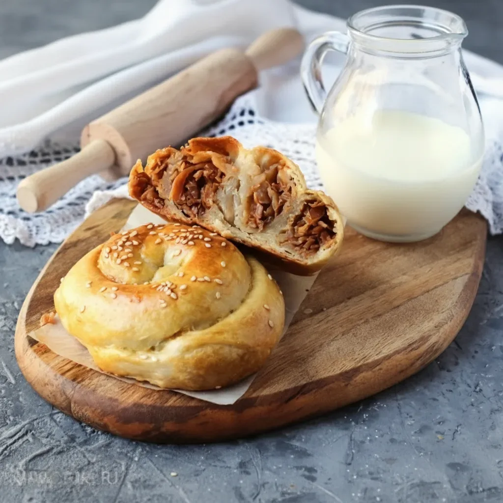 МОЛДАВИЯ Вертута с капустой Ингредиенты Для теста: - вода — 250 мл; - соль — 1 ч. л.; - растительное масло — 50 мл; - пшеничная мука — 500 г. Для начинки: - капуста белокочанная — 600 г; - лук репчатый — 1 шт.; - соль, чёрный молотый перец — по вкусу; - томатный сок — 50 мл. Дополнительно: - яйцо — для смазывания; - кунжут — 1 ст. л. Пошаговый рецепт 1. Замесите тесто. В миске смешайте воду, соль, масло, постепенно добавьте муку. Замесите мягкое эластичное тесто. Накройте плёнкой, оставьте «отдыхать» на 40 минут. 2. Приготовьте начинку Нарежьте лук, обжарьте до золотистого цвета. Добавьте наш…