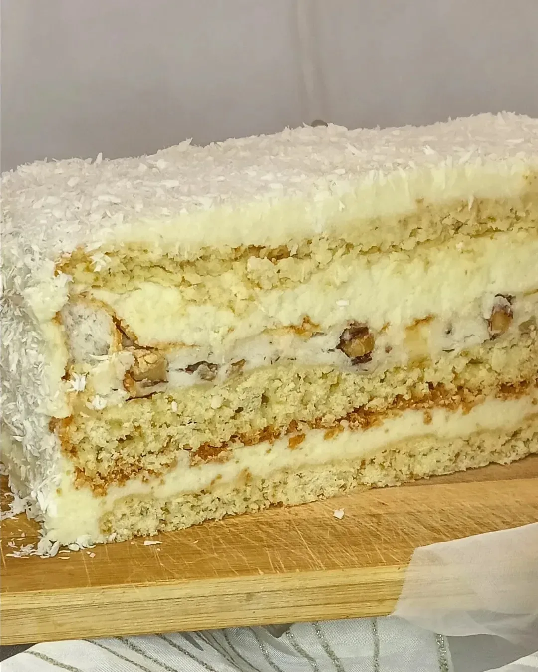 Рецепт торт Пляцок «Рафаэлло» 🥥🌴 Форма 24 × 24 см Ингредиенты Для теста: - Желтки — 5 шт. - Сахар — 200 г - Мука — 350–400 г - Разрыхлитель — 10 г - Сливочное масло — 150 г - Сметана — 100 г Для крема: - Молоко — 0,6 л - Яйца — 2 шт. - Сахар — 250 г - Ванильный сахар — по вкусу - Кукурузный крахмал — 60 г - Сливочное масло — 250 г - Белый шоколад — 100 г - Кокосовая стружка — 100 г Для меренгового слоя: - Белки — 5 шт. - Сахарная пудра — 150 г - Кукурузный крахмал — 40 г - Миндаль — 100–150 г (измельчённый) Приготовление 1. Отделить желтки от белков. 2. Сливочное масло натереть в муку с разры…