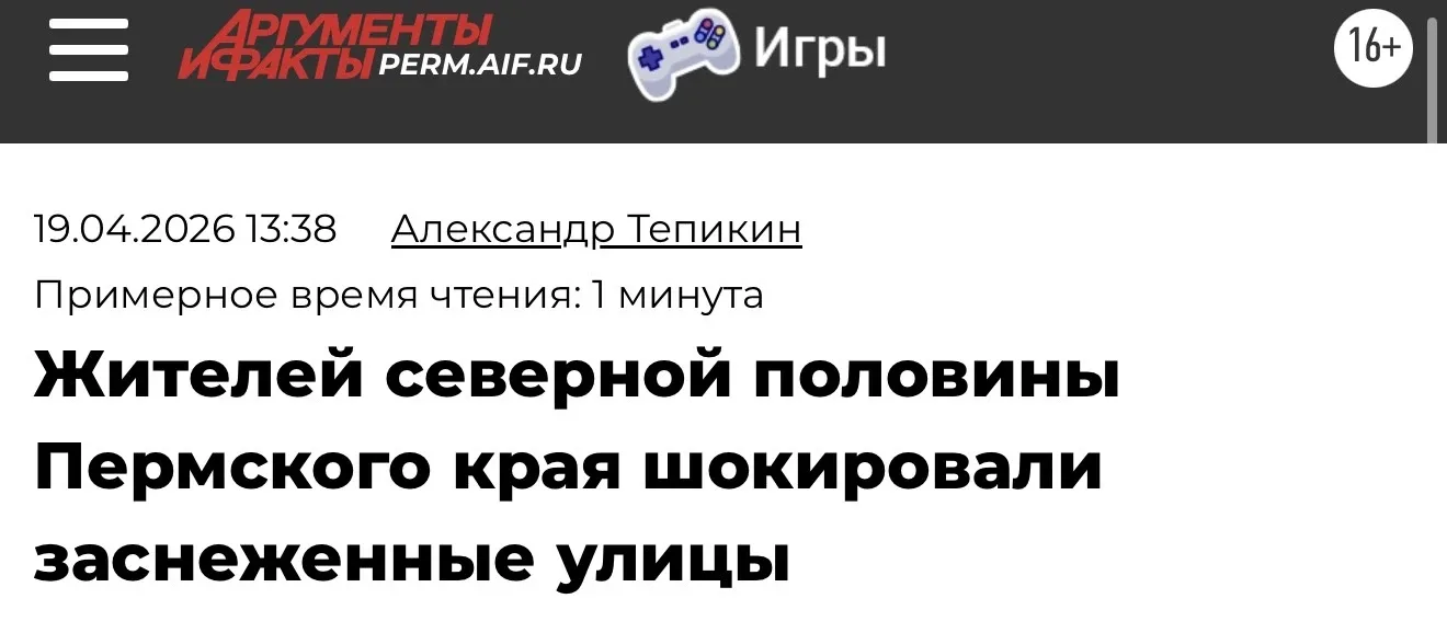 ❄️В соцсетях все удивляются и даже «шокируются» выпавшему снегу на севере края. Совсем память короткая стала: год назад, 28 апреля, на регион обрушился самый сильный снегопад в 21 веке, в Перми тогда случился знатный «день жестянщика». На Урале все-таки живем, рано менять резину расслабляться никогда нельзя.