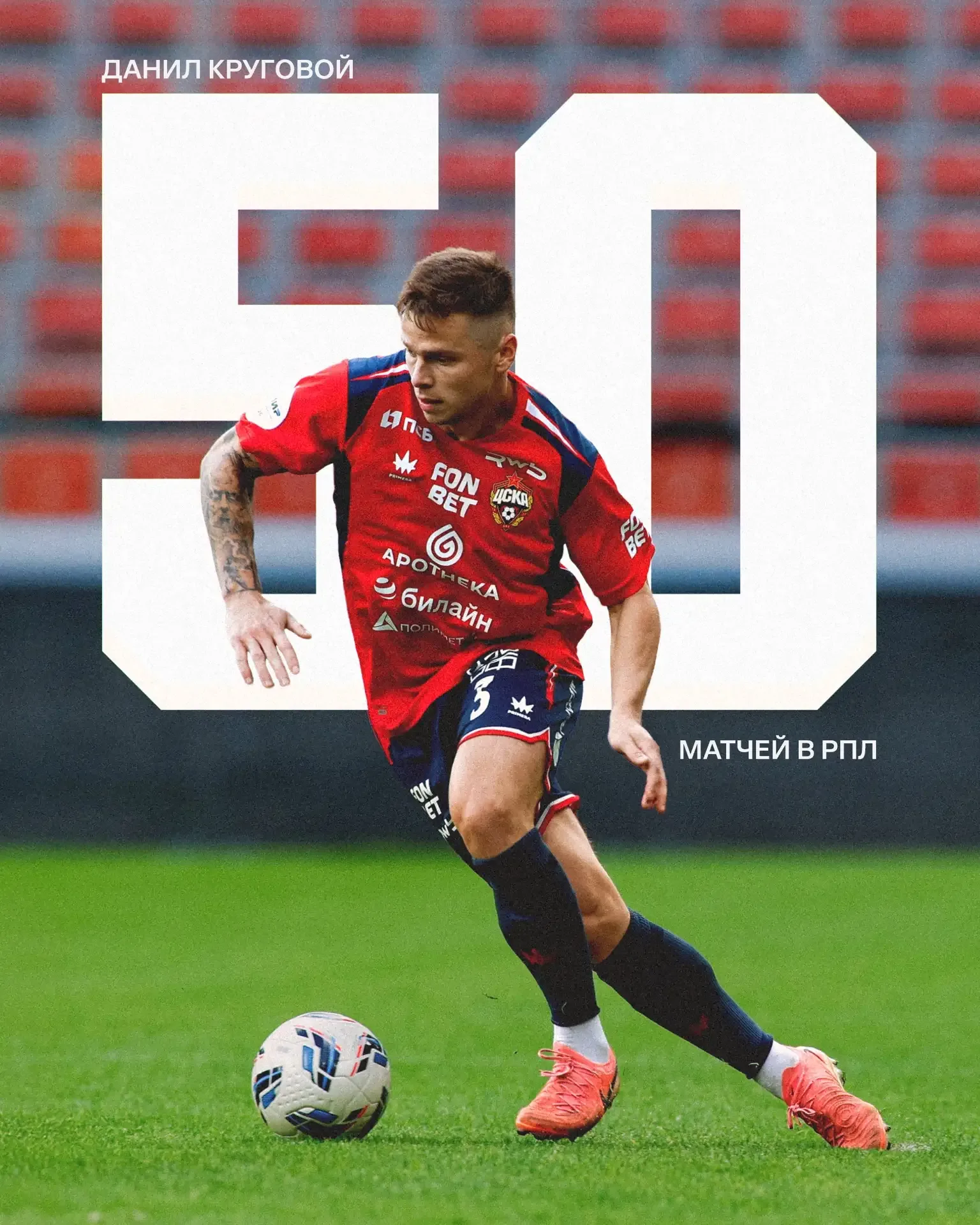 Данил Круговой провел 5️⃣0️⃣-й матч за ЦСКА в МИР РПЛ! 👏🏻 – поздравляем Круга