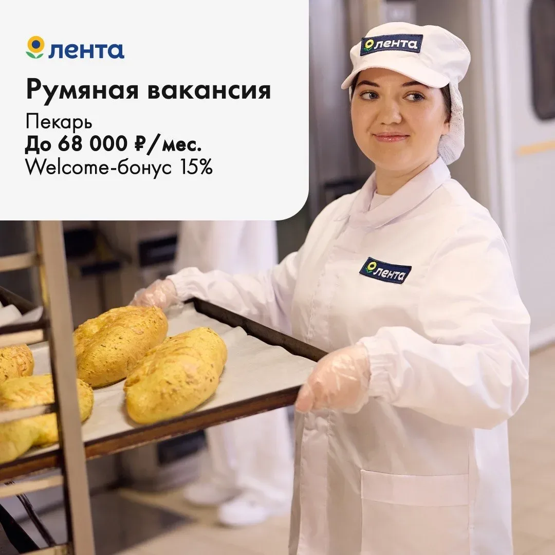 Работайте с аппетитом 😊 Вакансия пекаря в «Ленте». До 68 000 ₽/мес. Гибкий график и обучение от компании. Здесь отличные условия 🔥 — Официальное оформление — Оплачиваемая стажировка с первого дня — Welcome-бонус 15% — Выплаты вовремя: раз в неделю или 2 раза в месяц — Специальные скидки в «Ленте» — Ежемесячные премии — После трех месяцев бонус за стаж: + 1150 ₽ каждый месяц — Бонусы за особые условия труда — Вкусные обеды за 45 ₽ — Медкнижка и ДМС — Консультации специалистов по психологии, медицине, питанию, финансам и праву — Подарки за рекомендации друзьям — Форма от компании — Рост и профе…