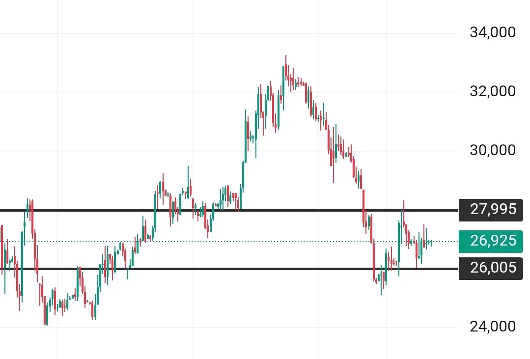 #MAGN Сразу к идее! ММК упал с 33.000 до 26 925 за 2 месяца. Падение почти 21%. Осциллятор на экстремальных значениях. Что важно. Уровень 26.000 тестировали дважды за последние две недели. Оба раза отскочили. Сейчас третья попытка снизу. Осциллятор в перепроданности. В этом году такие значения были дважды. Оба раза заканчивались отскоком на 8-10% за неделю. Сейчас 26.925. Уже +3% от низа 26.000, но потенциал остаётся. ☝️Беру лонг от текущих. Цель - 28.000 (первое сопротивление) При пробое 28.000 добираю до 30.000. Стоп - 25.700 (под уровнем поддержки) Соотношение риска к прибыли 1:3 по первой…