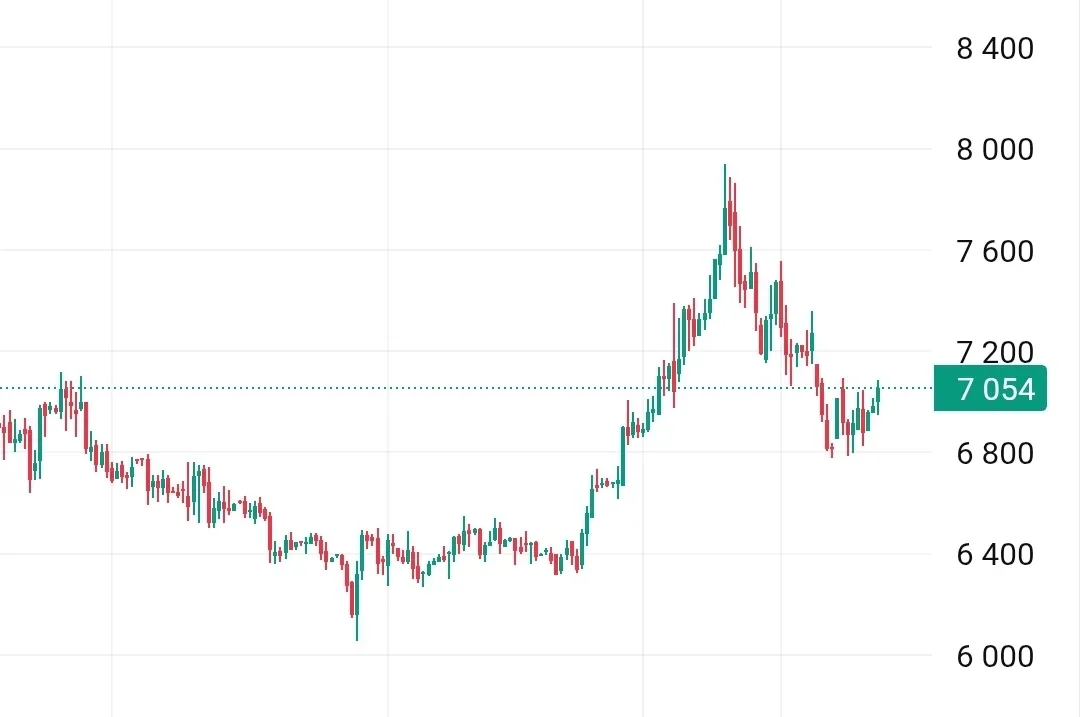 #PHOR Сразу к идее! Фосагро упало с 8400 до 7054. Почти 16% падения за три недели. Осциллятор подходит к зоне перепроданности. Что важно. Уровень 6800 тестировали дважды в этом году. Оба раза отскакивали до 7600-8000. Сейчас третья попытка. Но пока до 6800 ещё 250 пунктов. Почти 3.5%. Рановато для входа. Осциллятор не на экстремуме. Можем скатиться ниже перед разворотом. ☝️План: · Жду подхода к 6800 · Лонг от 6800 с целью 7200 (первое сопротивление) · При пробое 7200 добираю до 7600 Стоп - 6650 Если цена развернётся от 6900-6950 с хорошим объёмом — буду входить раньше. Но с коротким стопом. П…