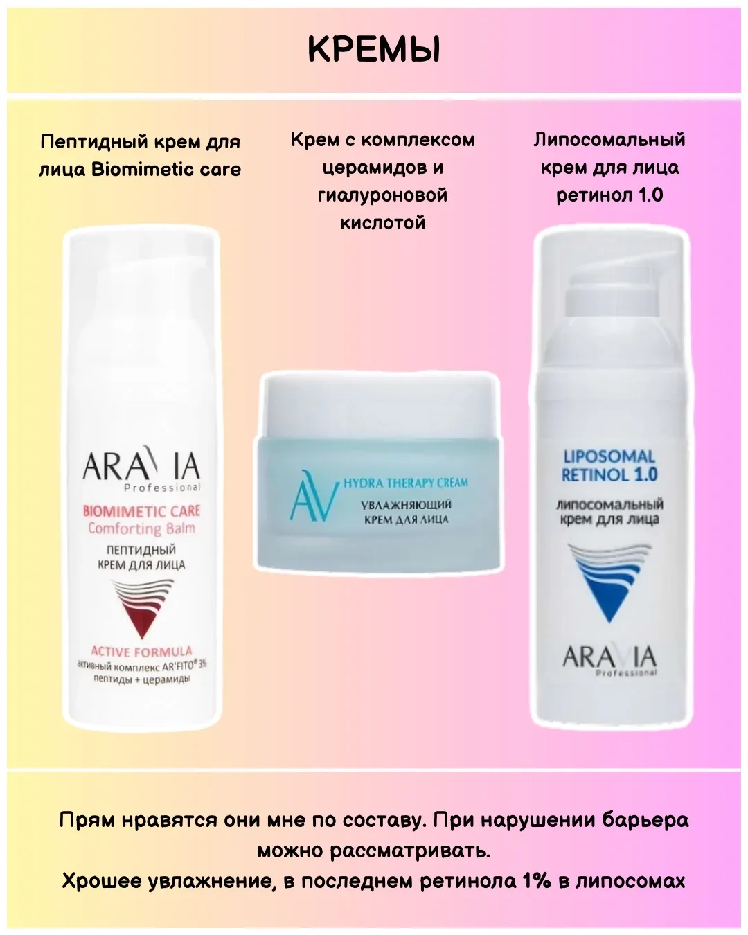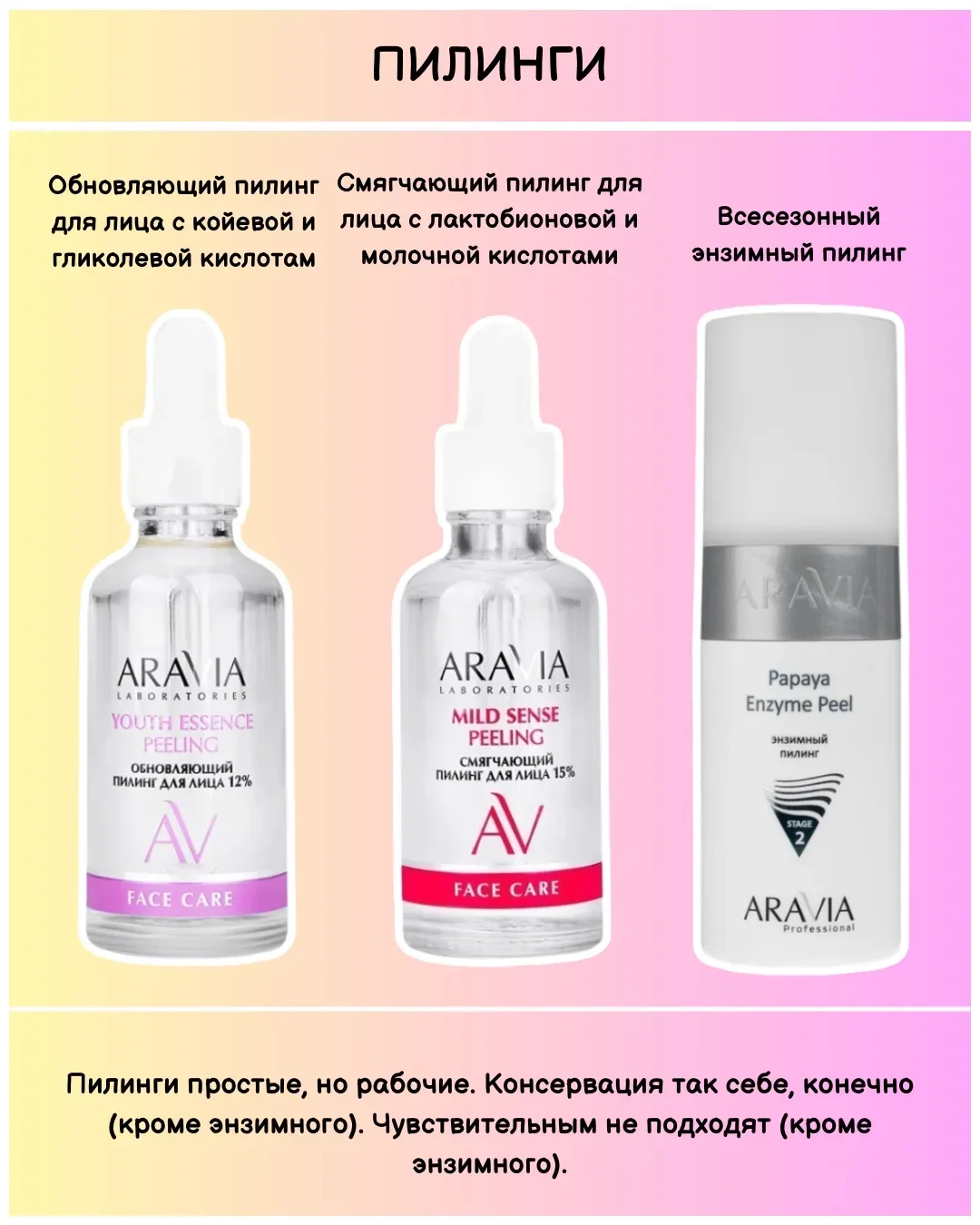 Было много запросов, но я не решалась сделать обзор на бренд Аравия... Потому что у вас к ним либо любовь, либо ненависть)) А я отношусь к ребятам лояльно. Раньше скорее игнорировала. Сейчас ассортимент расширили, некоторые составы усовершенствовали. Не полнилась и посмотрела ВСЕ продукты бренда. Пост готовила долго, тщательно, максимально беспристрастно. Что-то пробовала лично и осталась довольна. ✅ Если обобщить, то бренд можно отнести к поддерживающему уходу. Таргетных средств мало, в том числе антэйдж, от пигментации и акне. Основные поклонники бренда - сухокожики. Удачные активные серии …
