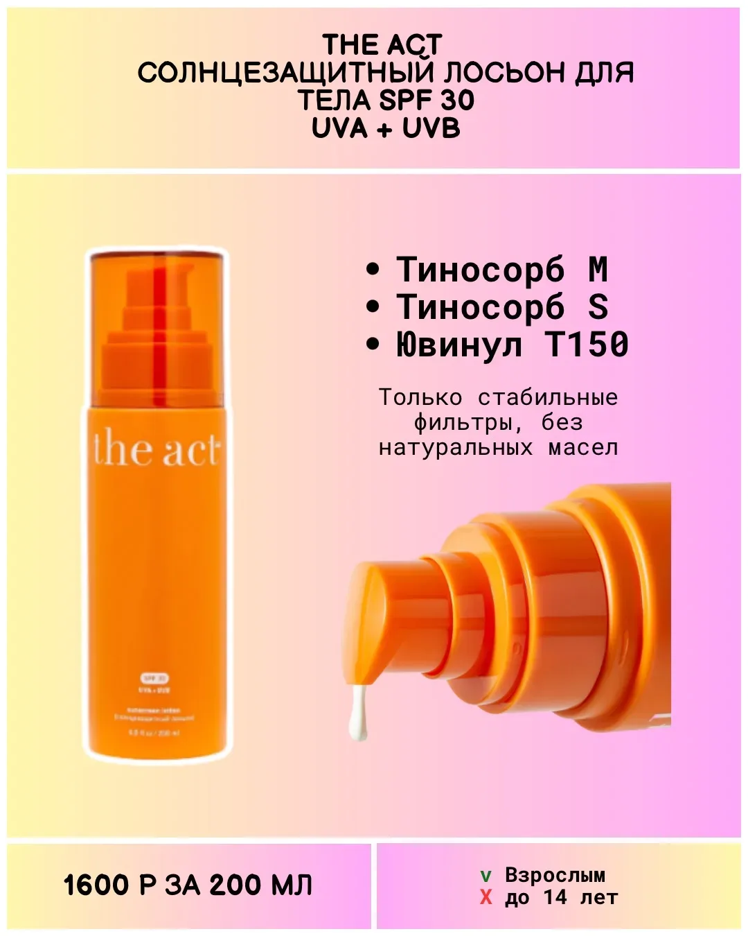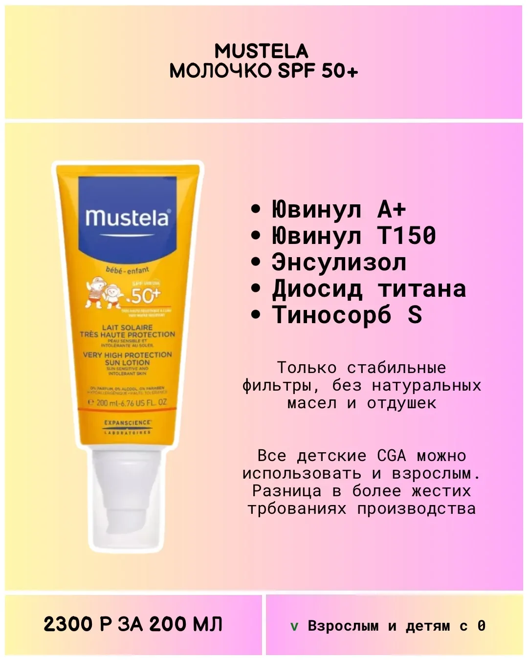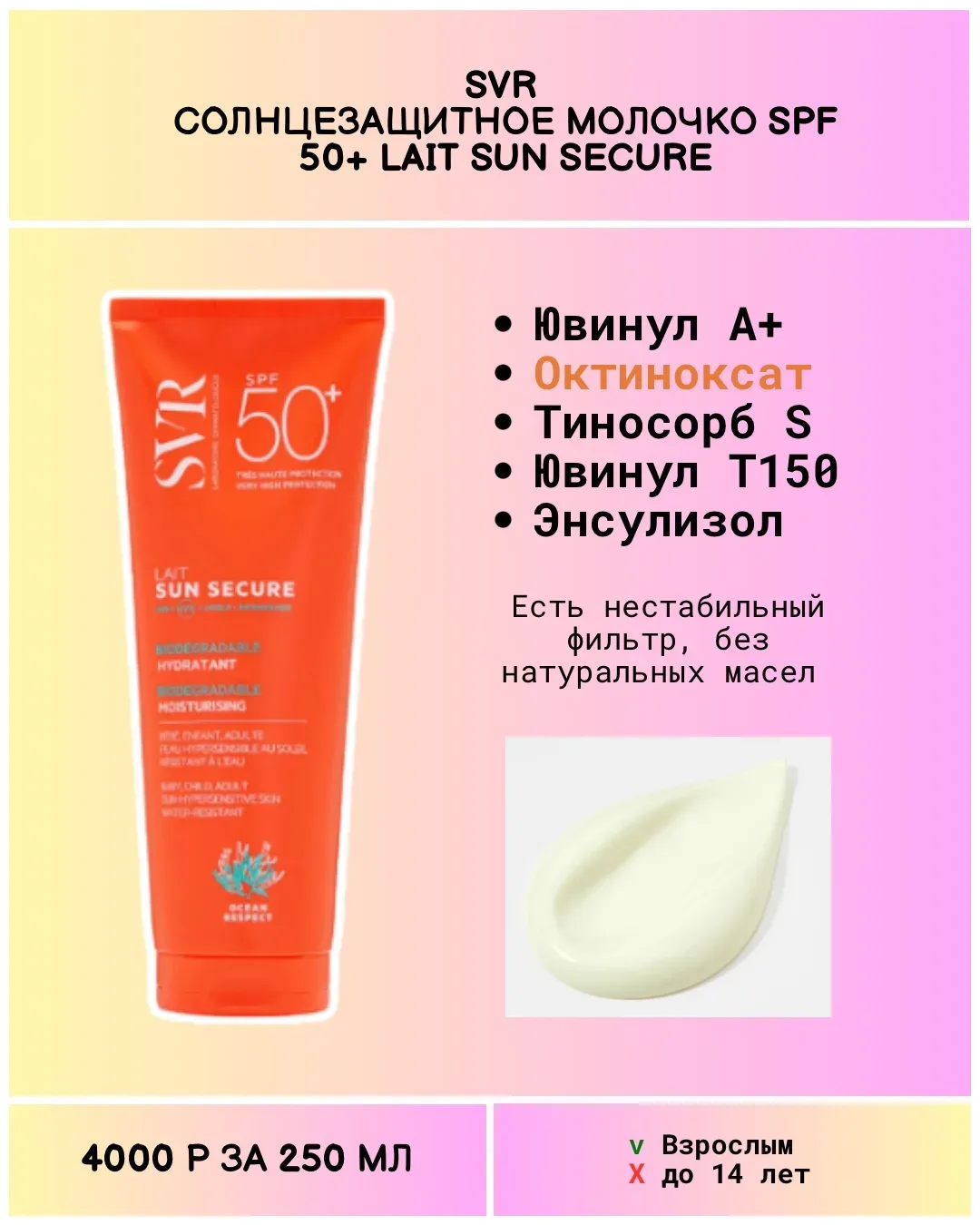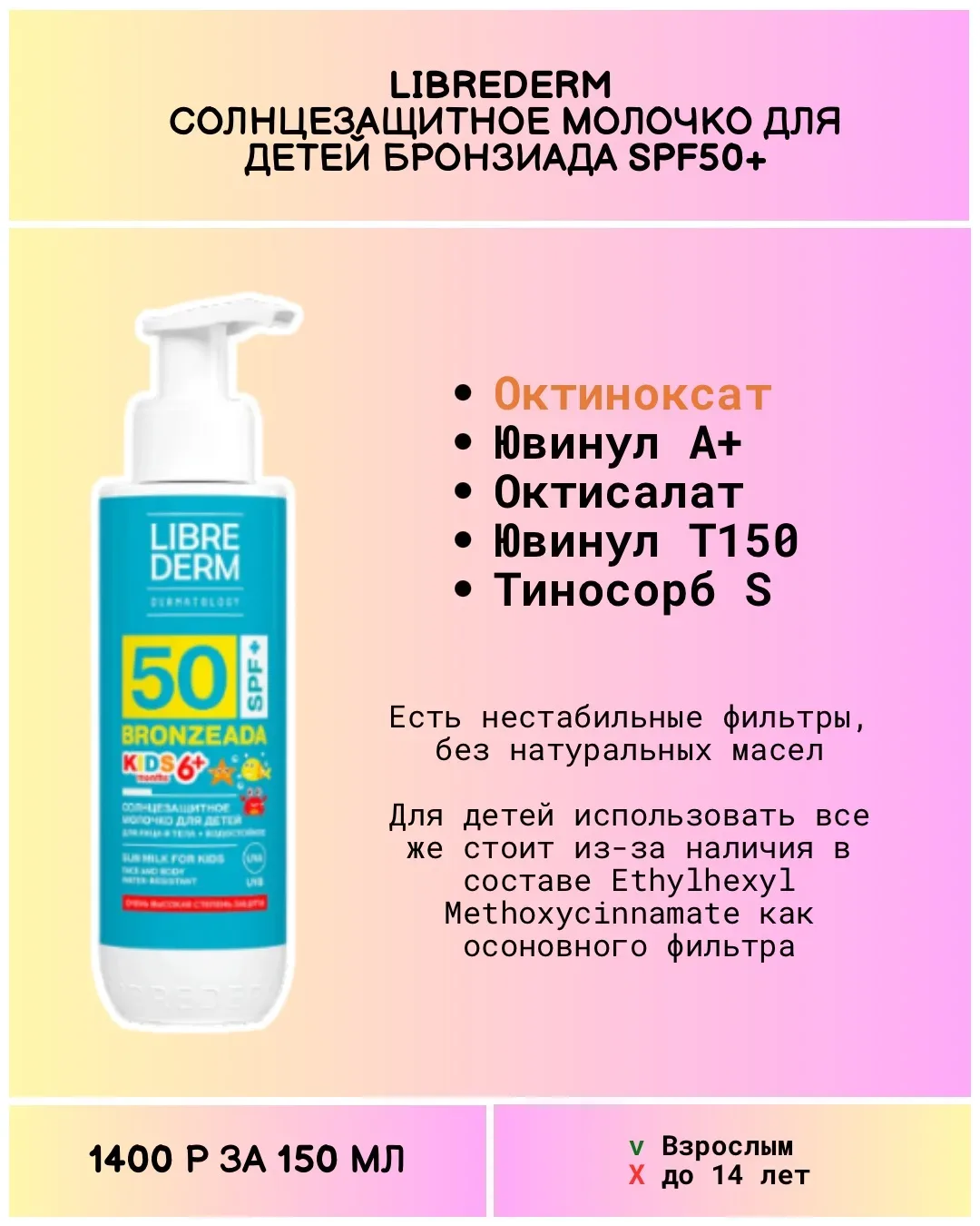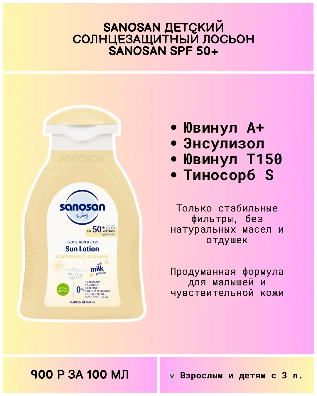 Думала подборка так и не соберется... Потратила на поиск СПФ для тела без авобензона 5 часов! Это тот самый УФ фильтр, который портит одежду рыжими пятнами. Найти СПФ в большом объёме без него реально проблема. Естественно, я искала стабильные современные формулы (без октокрилена, авобензона). Просмотрела все Ля Рош, Авен, Урьяж, Нивея, Гарнье, Виши, Дерма-Б... А корейцам никто не говорил, что СПФ можно в большие банки наливать?)) Как ни парадоксально, среди составов именно детских средств наиболее часто встречаются Октокрилен и Ethylhexyl Methoxycinnamate. Про СПФ можно говорить бесконечно. …