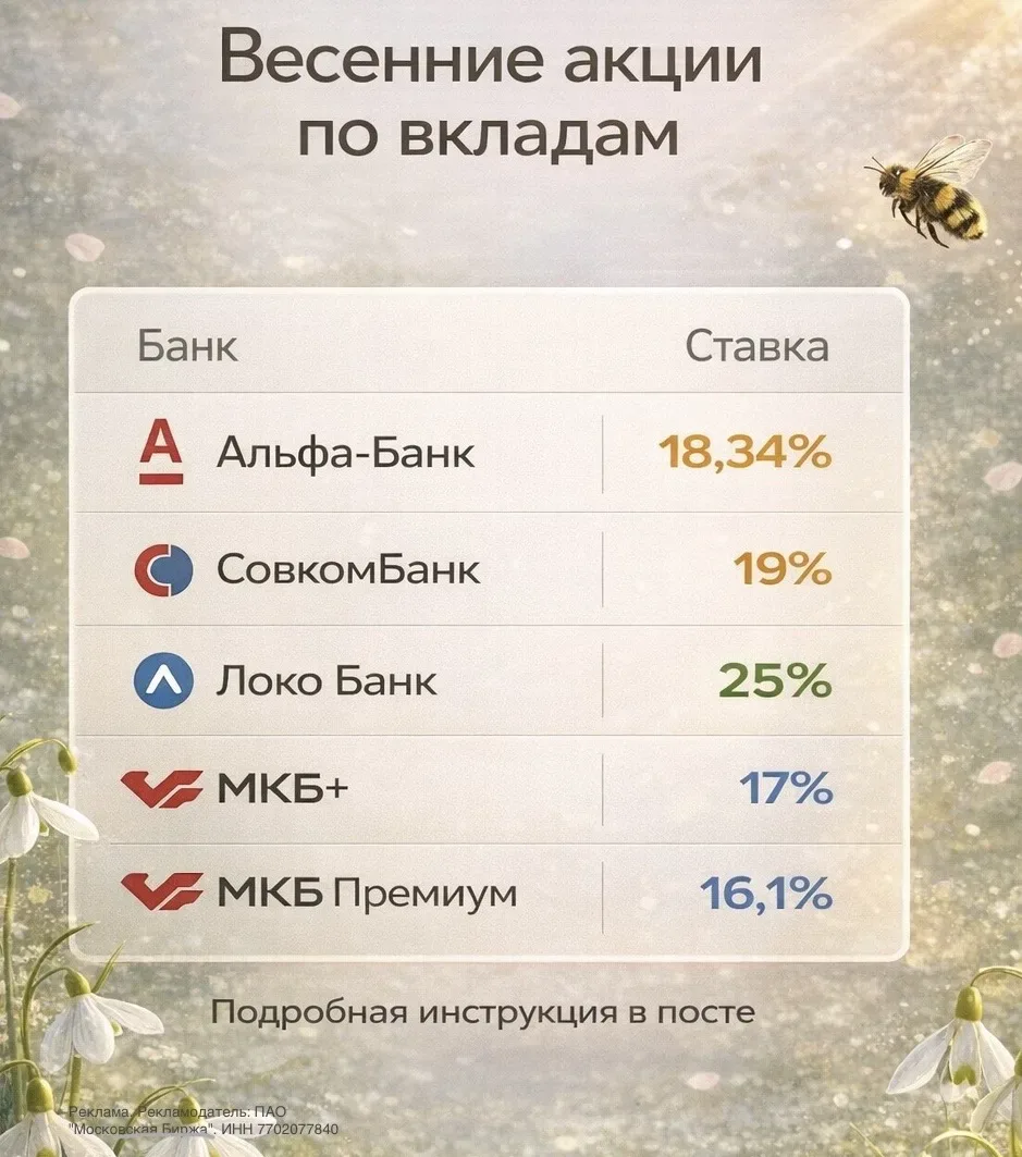 Вклады снова популярны — ставки выросли, и многие возвращаются к ним😉 Иногда разбираю и такие базовые истории, но в целом канал про более широкую картину: акции, облигации, валюты и инвестиции. 🔸Ниже подборка вкладов, как и обещал: 🔥ДОМРФ, 25% — ВОТ ССЫЛКА, ЖМИТЕ — На 3 либо 6 месяцев честные 25%. Но до 50000₽ сумма вклада. 🔥АЛЬФА БАНК — 18.34% — ВОТ ССЫЛКА, ЖМИТЕ (Пo промокоду BONUS55 прибавка +5,5% к проценту. К примеру, на 3 месяца аж 18,34%. Сумма от 50000₽ до бесконечности). Важно! Для любого вклада нужно сперва создать новый аккаунт на Финуслугах, чтобы сработал промокод (касается всех …