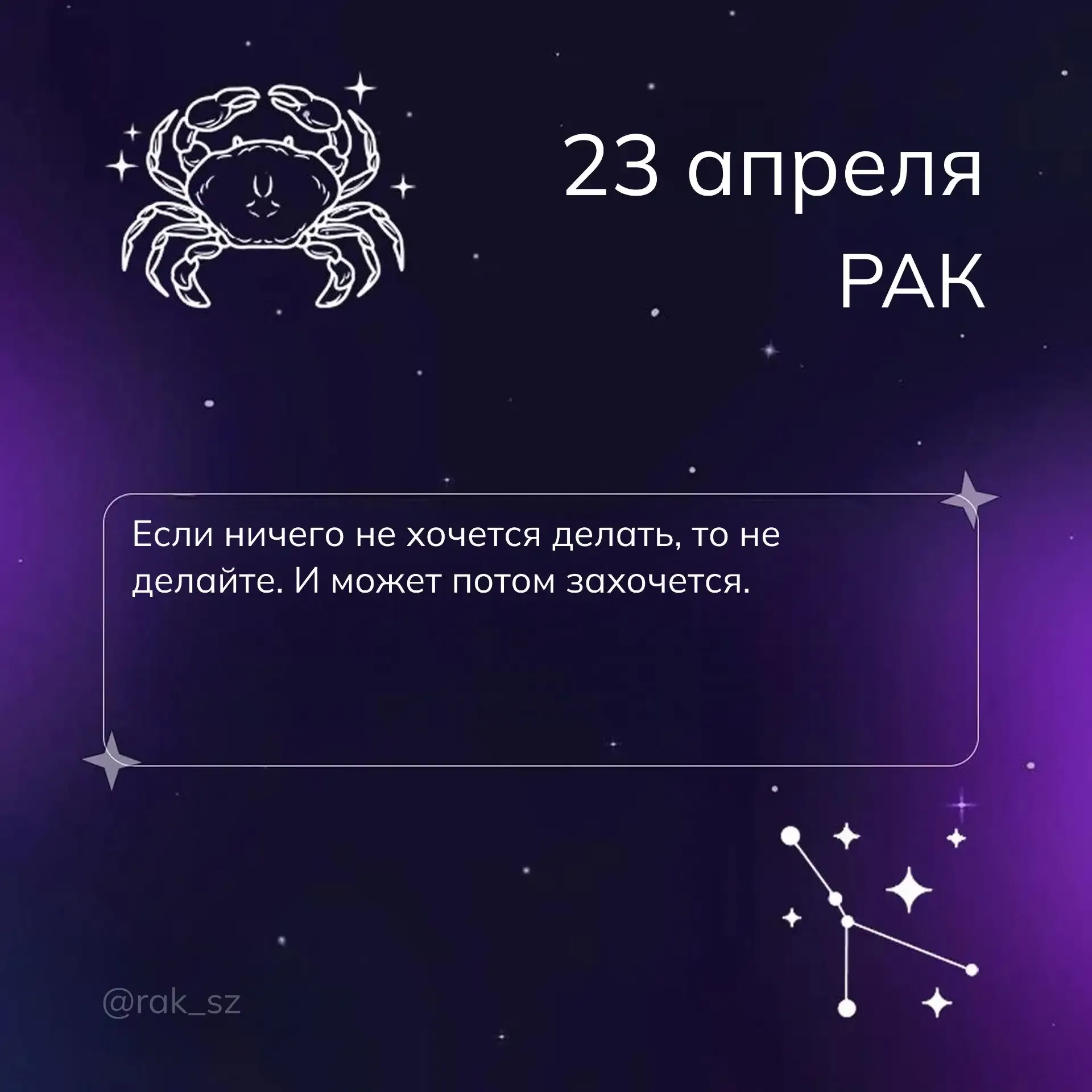 ♋︎ Рак, 24 апреля Ты многое держишь в себе, и сегодня как раз появится шанс высказаться, не упускай его.