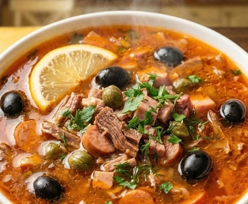 ❤ Любимая солянка моего мужа - самый подлинный рецепт! Вкуснее супчика я не пробовала. Нашла рецепт в старом советском журнале! ✏ Ингредиенты (на 3 л): - 300 - 500 гр. говядины - около 5 видов различных мясных деликатесов общим весом около - 300 - 500 гр. ЧИТАТЬ ПОЛНОСТЬЮ...