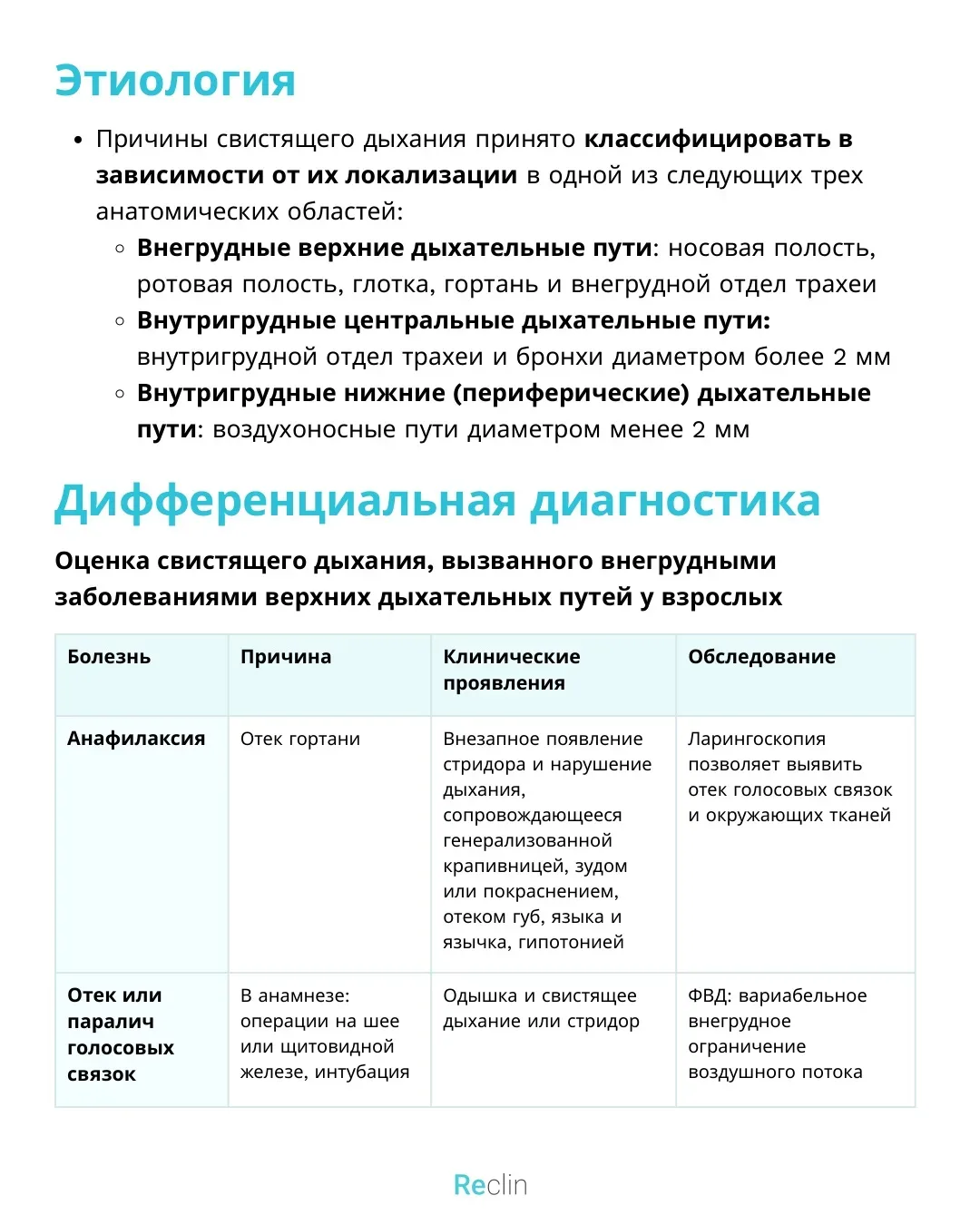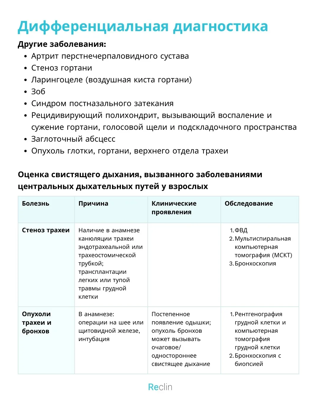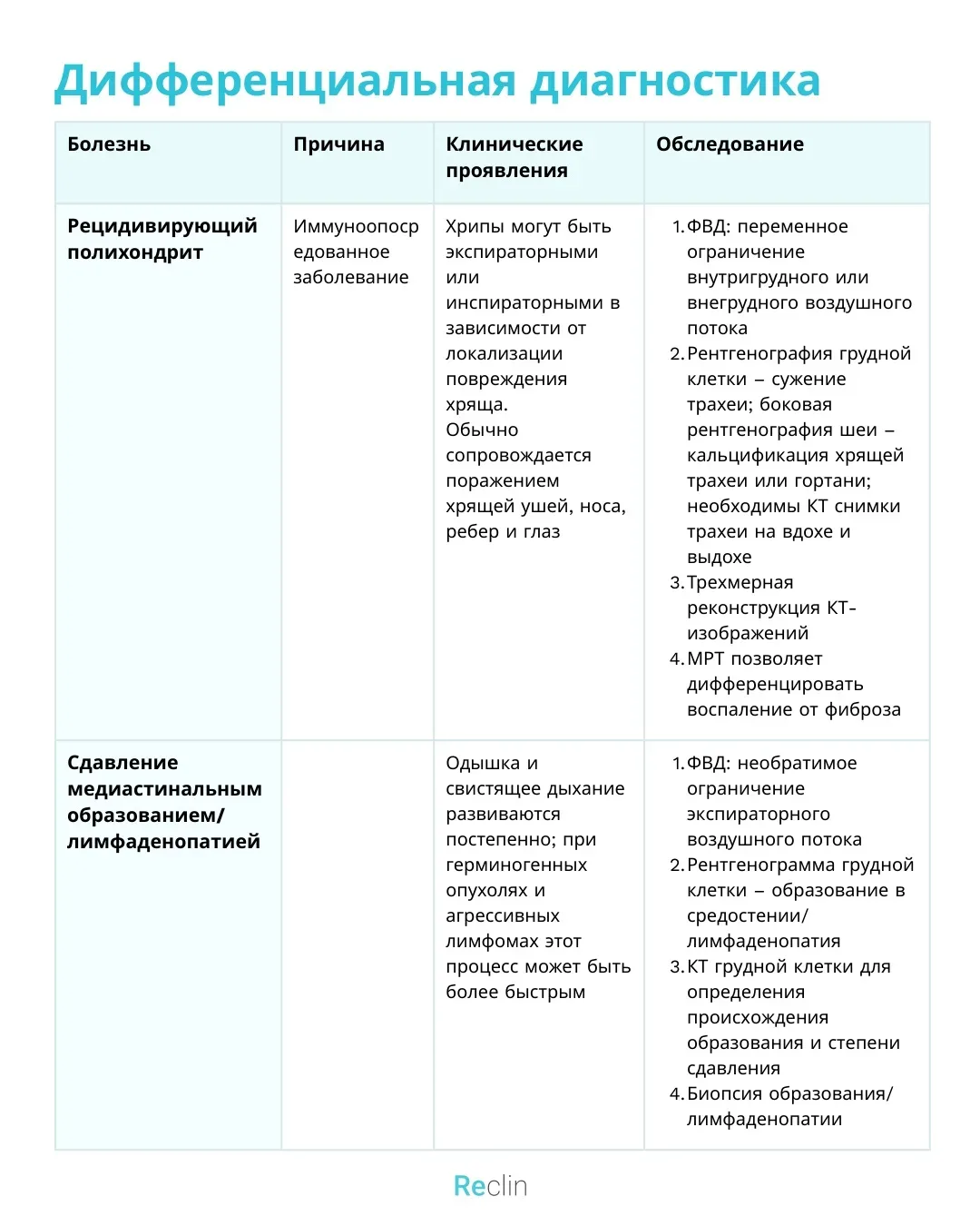 Reclin - сокращённые клинические рекомендации