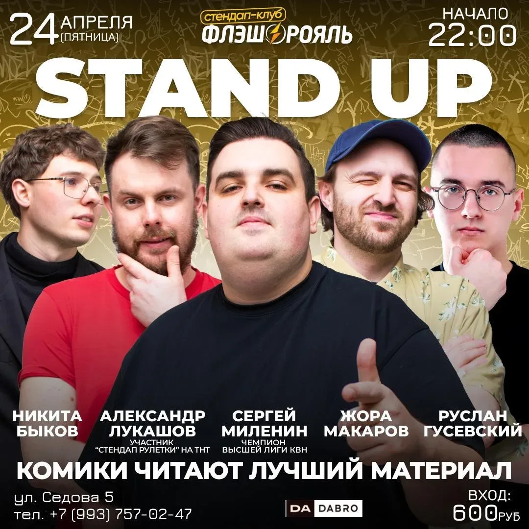 СТЕНДАП И МУЗЫКАЛЬНОЕ ЛОТО 📍Стендап-клуб Флэш-Рояль, ул. Седова, 5 🔥Скидка 100 руб по кодовому слову ФЛЕШ 🎫Бронь в ЛС https://t.me/FlashBarRnd или по номеру телефона 89937570247 Стендап ⏰24 апреля (пт) в 22:00 💵Вход: 900р. 🎙Ростовские комики читают свои лучшие шутки Музыкальное лото ⏰25 апреля (сб) в 22:00 💵Вход: 700р. 🎙Всеми любимое лото в формате музыкальной викторины Немного о Стендап-клубе "Флэш-Рояль": - Стендап-клуб, открытый Ростовской командой КВН Флэш-Рояль (ЧЕМПИОНЫ 2023 го года) - Стендап-клуб, в котором можно не только выпить и покушать, но и посмеяться, получить заряд позитивных …