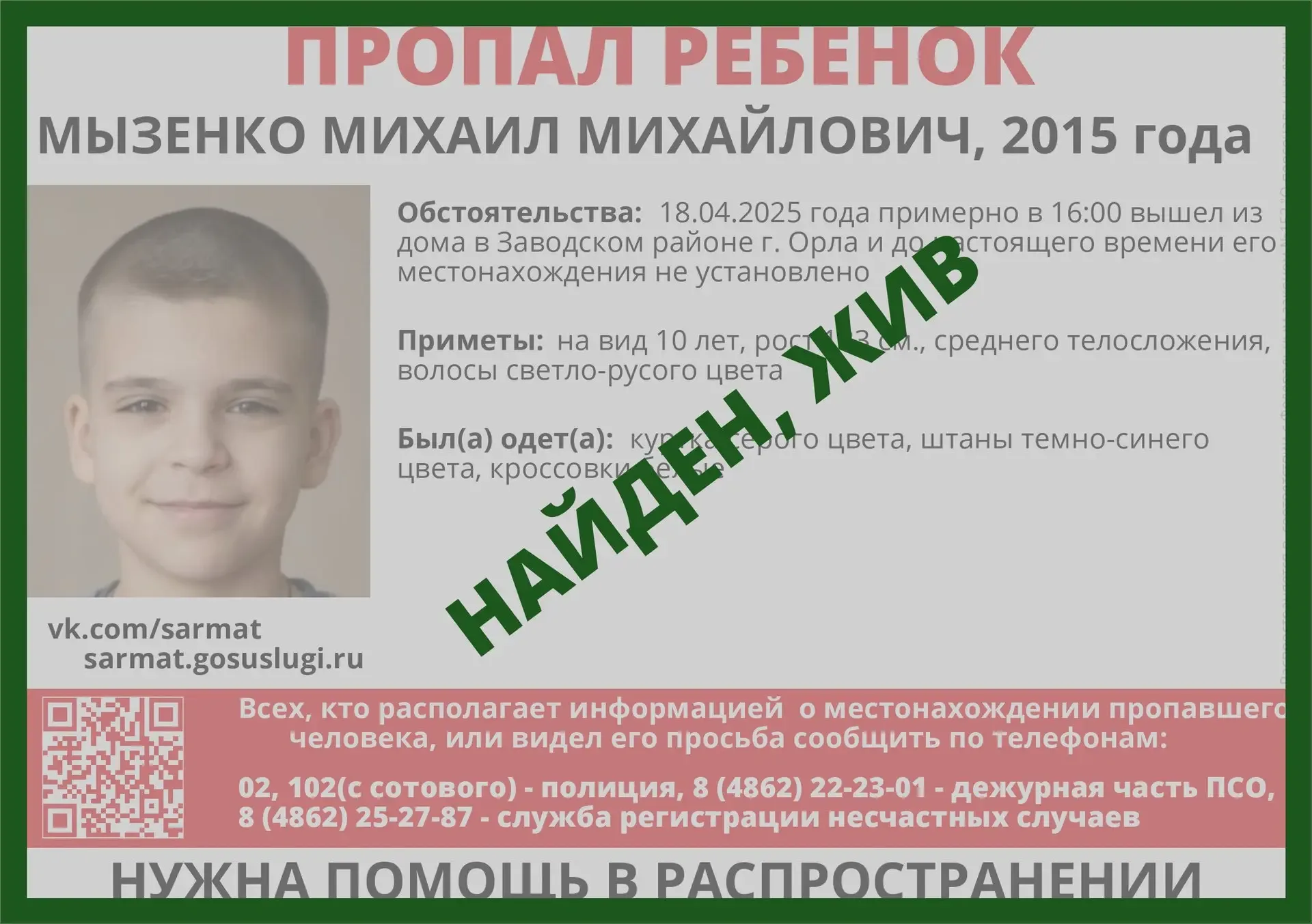 Канал @sarmat — это официальный информационный ресурс ОРОО "ПСО "Сармат". Здесь ежедневно публикуются актуальные сводки о пропавших людях, нуждающихся в поиске. Канал оперативно распространяет ориентировки, помогая привлечь внимание общественности к розыску.