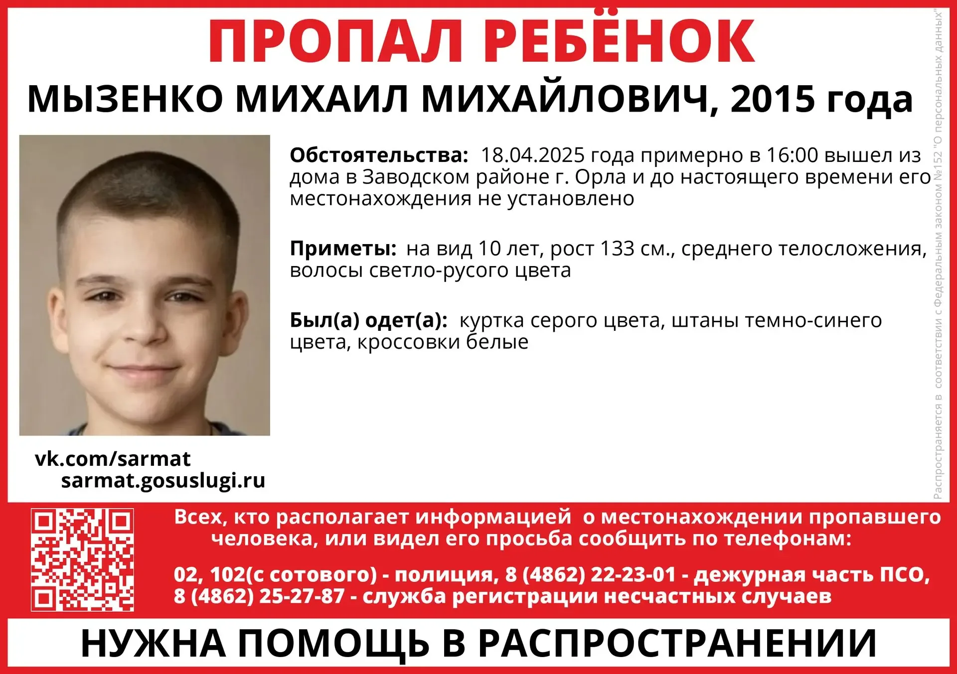 📣 Официальный канал ОРОО "ПСО "Сармат" В канале ежедневно публикуется информация о разыскиваемых лицах, а также правовая информация и полезные советы по безопасности. 💬 Наша группа в мессенджере Max: https://max.ru/join…