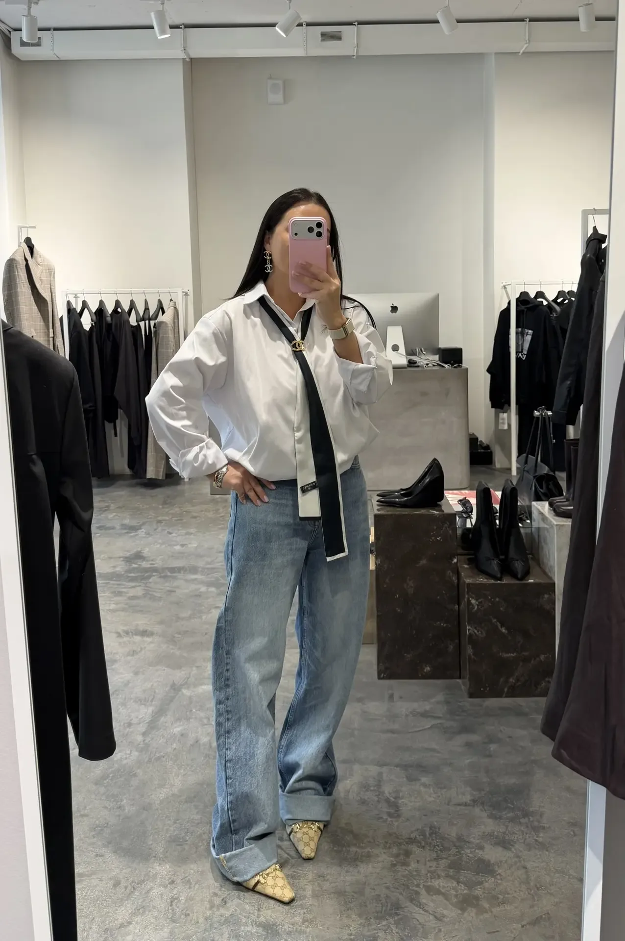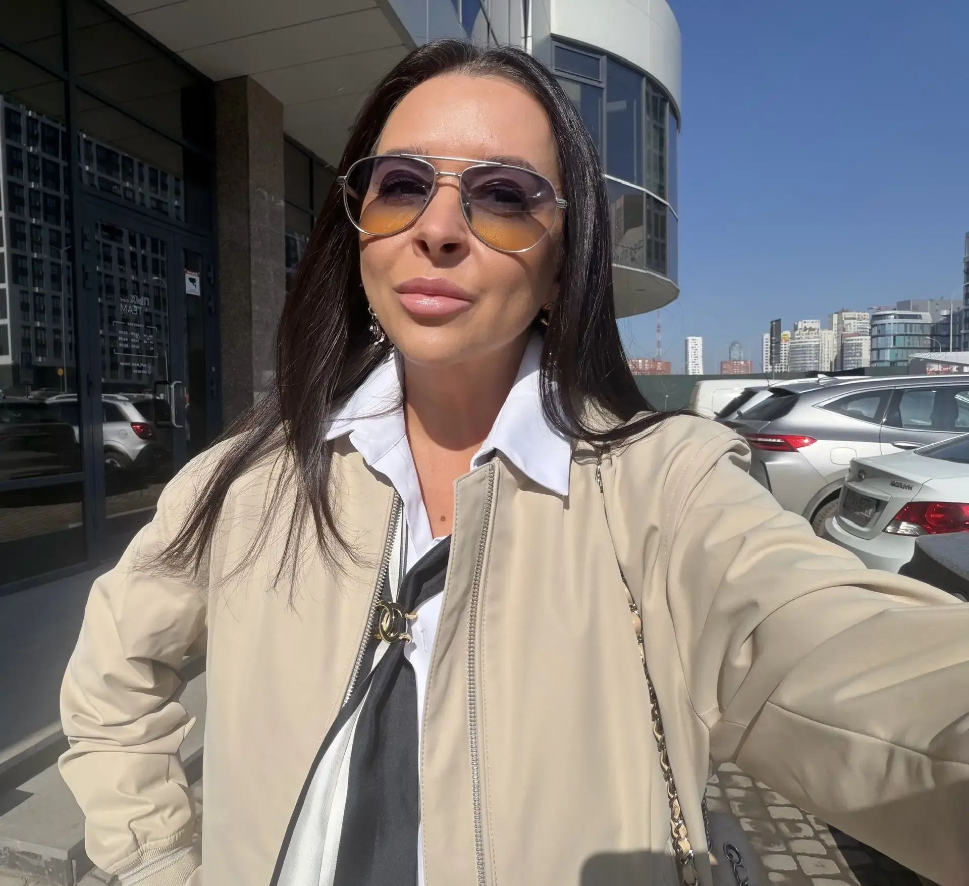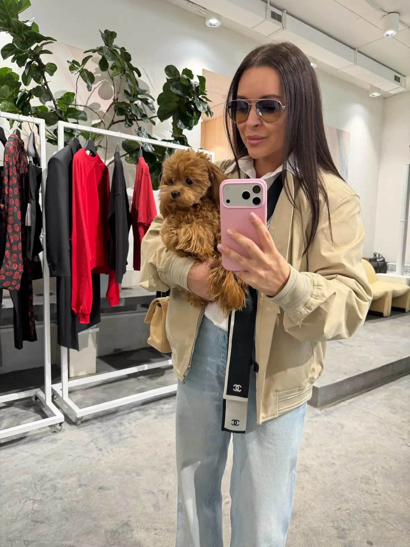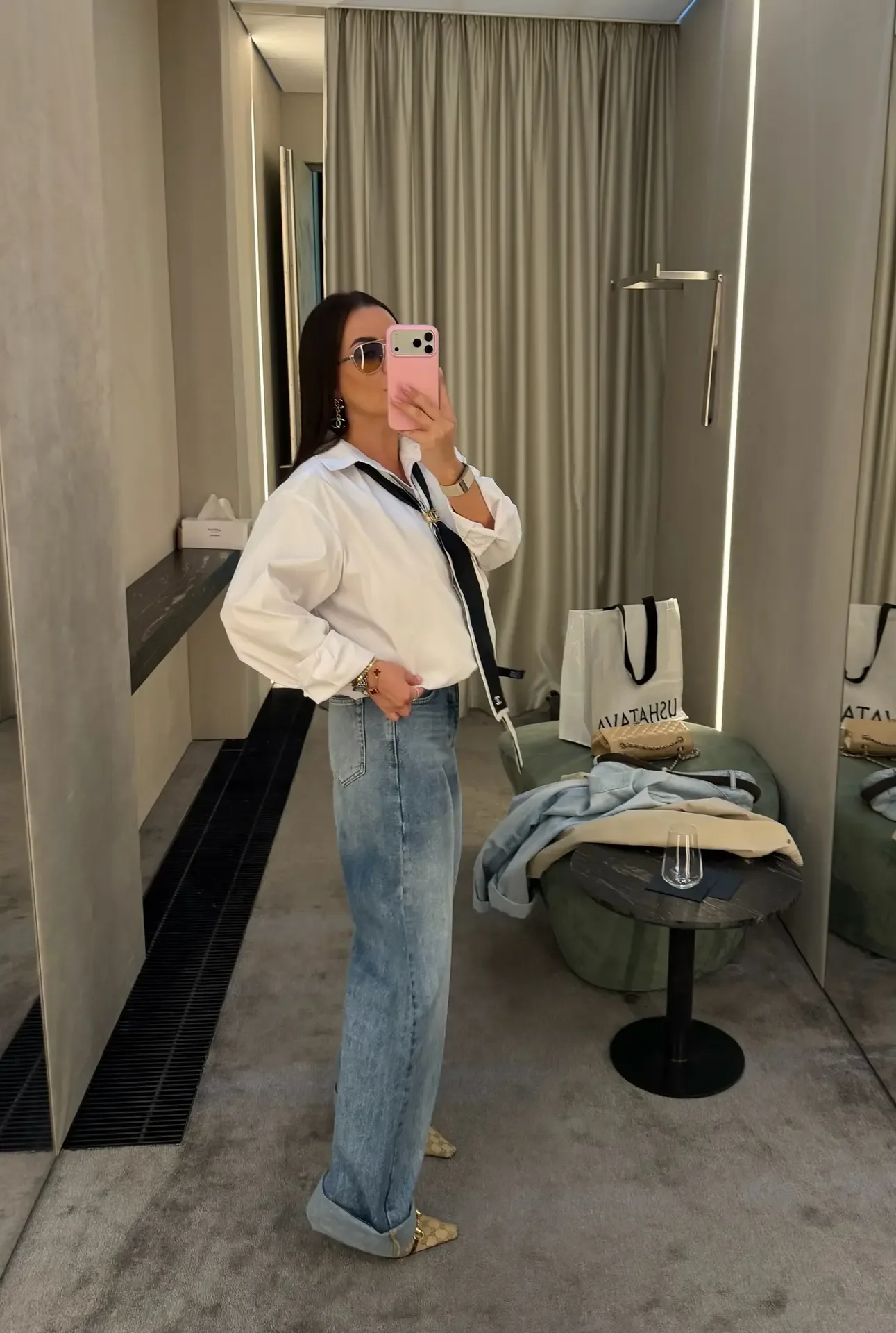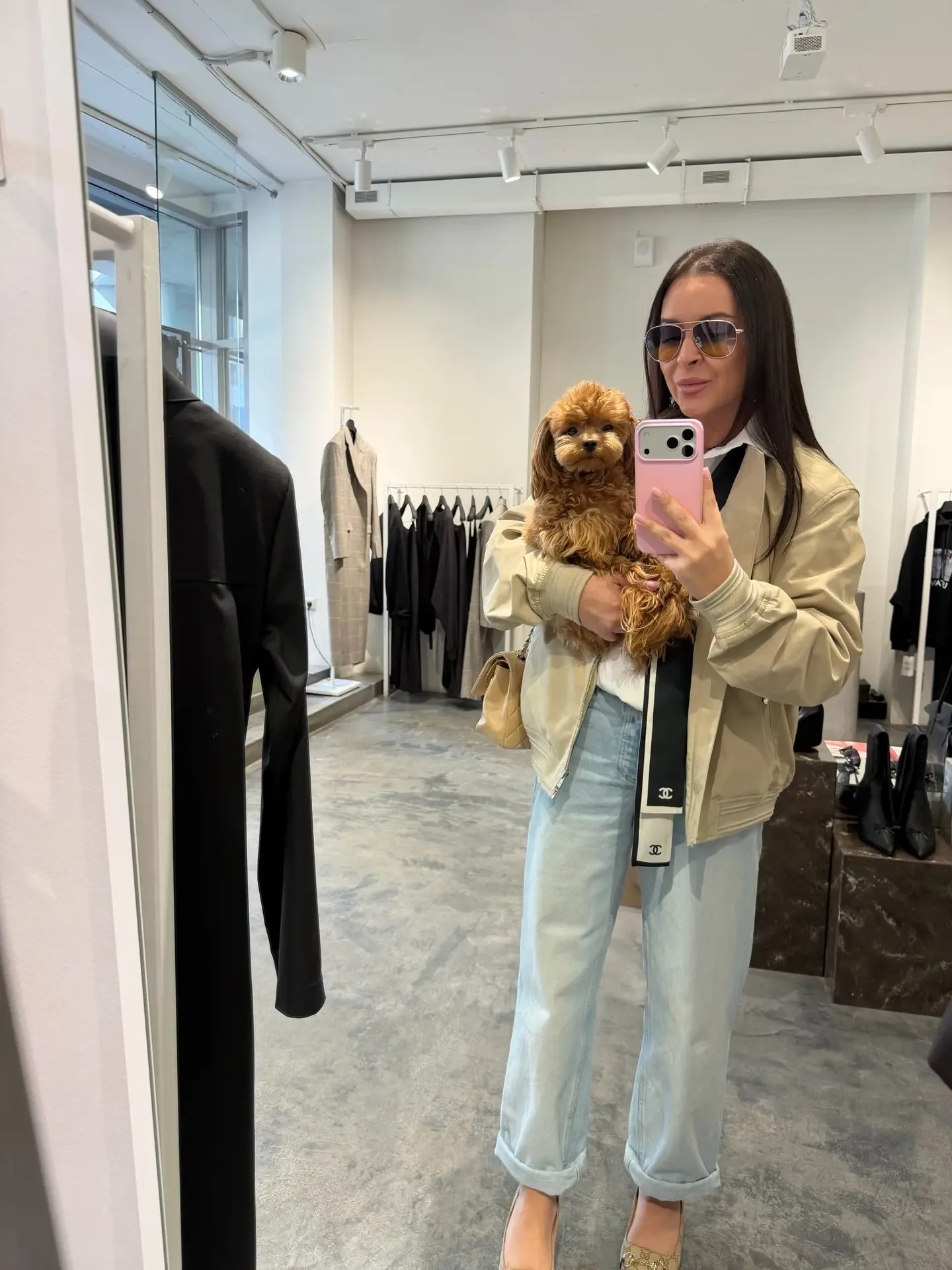 Look of the day Рубашка no meme not same Джинсы 12 storeez ( и Ushatava) Бомбер Boss (взяла у мужа 😅) Очки Prada ( тоже мужская коллекция) Туфли Gucci Собака подруги 😅♥️♥️