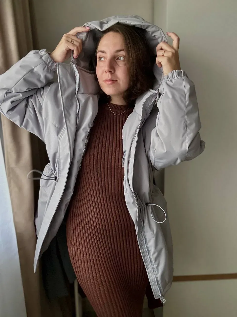 Доброе утречко, прямое включение прямо из дома😅 У нас похолодало и пасмурно. А я хочу показать вам как круто «хруст» смотрится с каблуками и брюками и это тот самый хруст, в котором я гоняла на горнолыжке. Одевайтесь теплее всех обняла, об остатках «Хруста» ниже⬇️