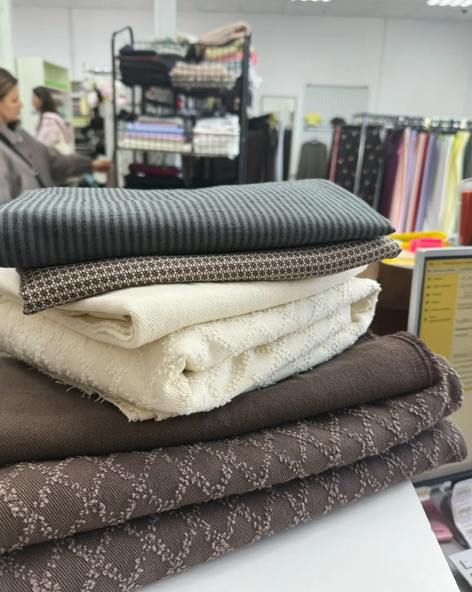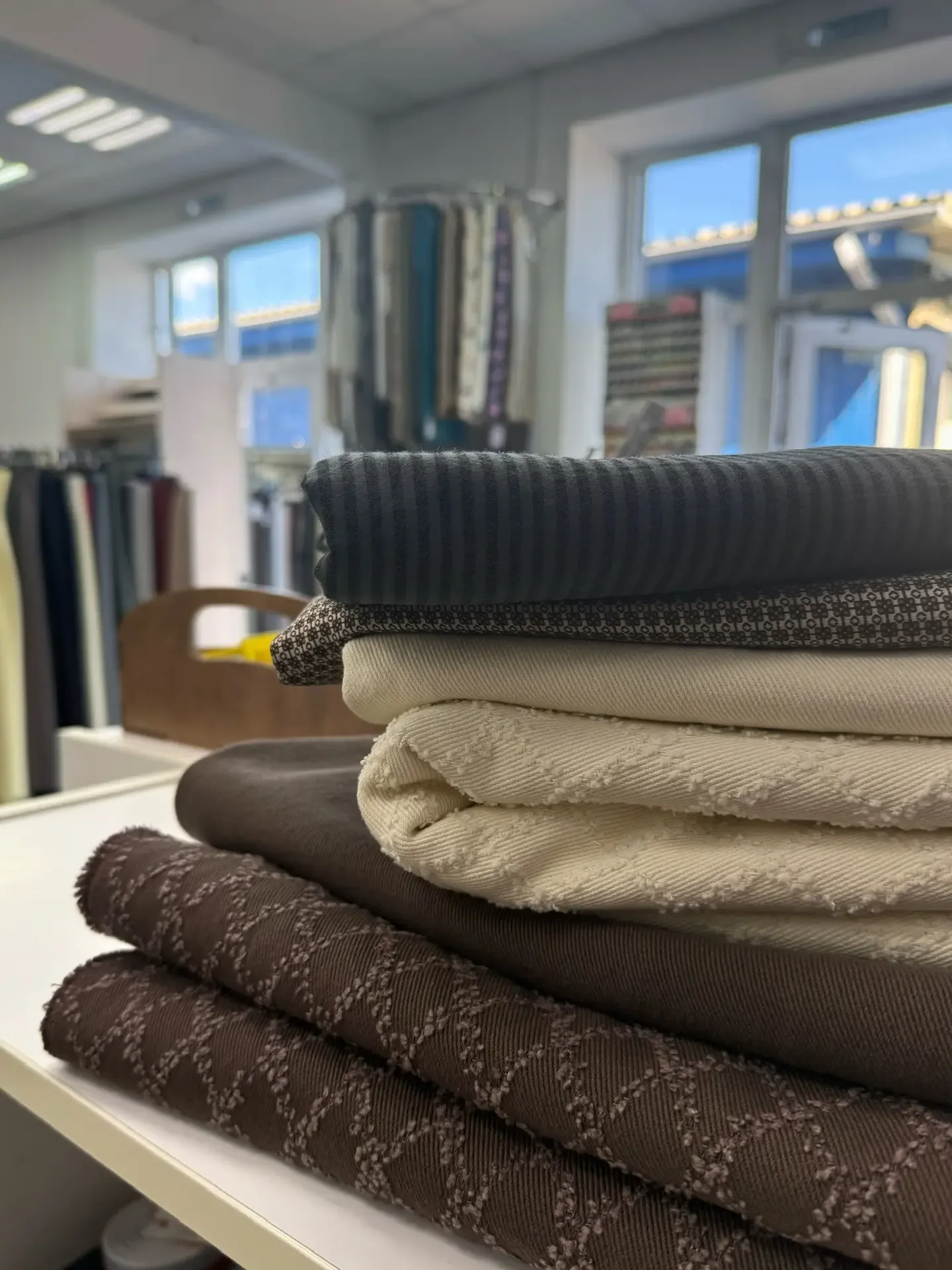 Ваши красивые покупки в магазине ❤️ Специально приложила 2 фото против света и свет сбоку - как по разному смотрятся оттенки ! Джинс ромбики шоколад и молочный Цена 1200₽ Джинс однотонный шоколад и молочный Цена 1050₽ Плательная нежная вискоза орнамент Цена 1200₽ Широкий вареный хлопок полоска Цена 570₽-15%=484,50 ₽ 🛍️ На ткани без акции действует скидка по накопительной карте 3-10% 📦 отправляем Сдэк, Яндекс, 5post, почтой от 5000₽ действует скидка на доставку 300₽ на розничные заказы Джинс ромбики у нас появился на Wildberries Отрезы по 1,5м И до конца апреля там действует промокод -15% ⭐️ Т…