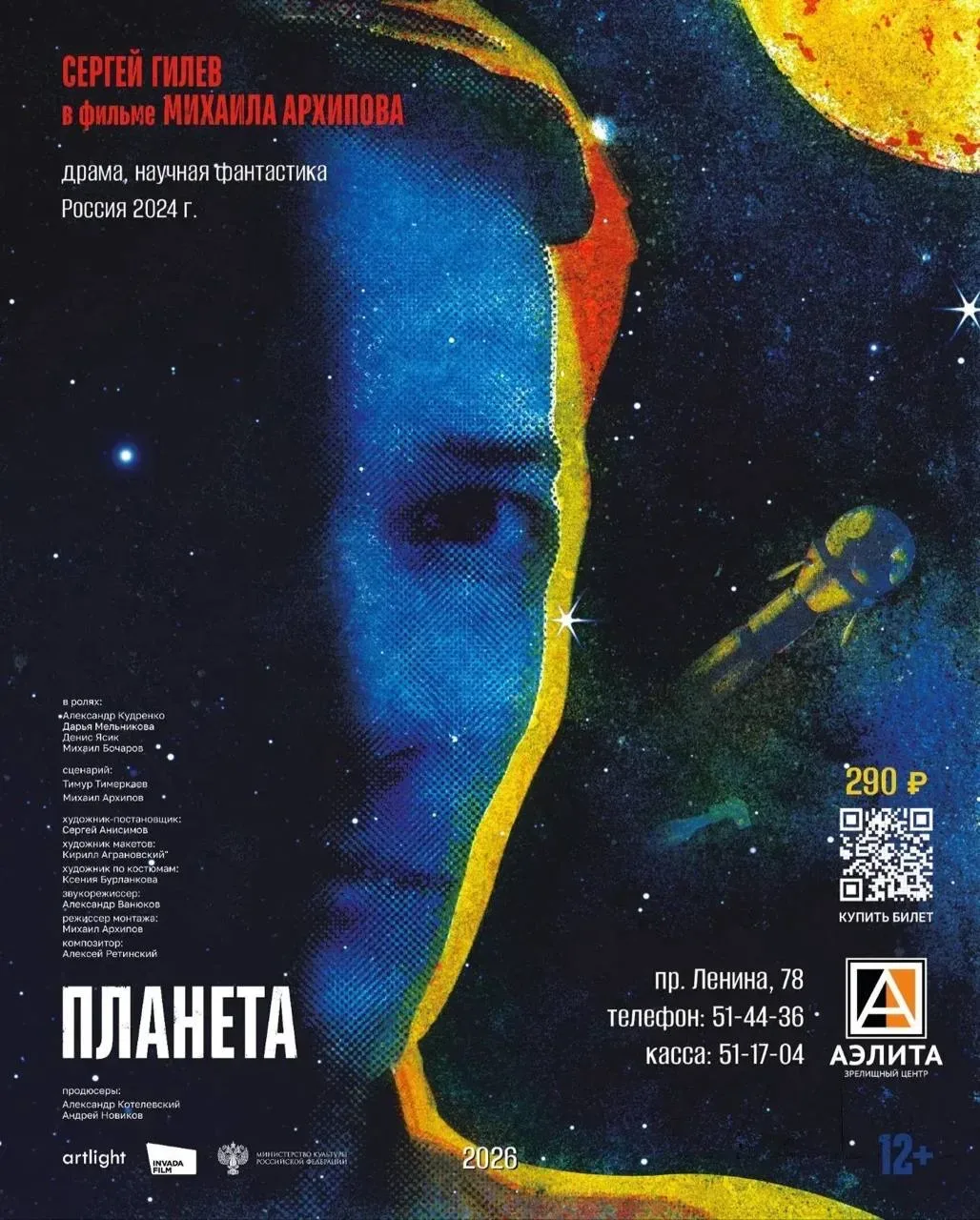 🌍 В «Аэлите» научно – фантастический фильм «Планета» С 1 по 28 мая в зрелищном центре «Аэлита» пройдут кинопоказы российского фильма «Планета». Российская научно – фантастическая драма режиссёра Михаила Архипова «Планета» посвящена истории создания научно-фантастического фильма «Планета бурь», снятого Павлом Клушанцевым и вышедшая через два дня после полёта Юрия Гагарина в космос. 📂1, 7, 15, 21 и 29 мая в 19:00 📍ЗЦ «Аэлита» пр. Ленина, 78 🎟️ 290₽ 📲 Мы в МАХ. Подпишитесь, на всякий - https://max.ru/tsk_go