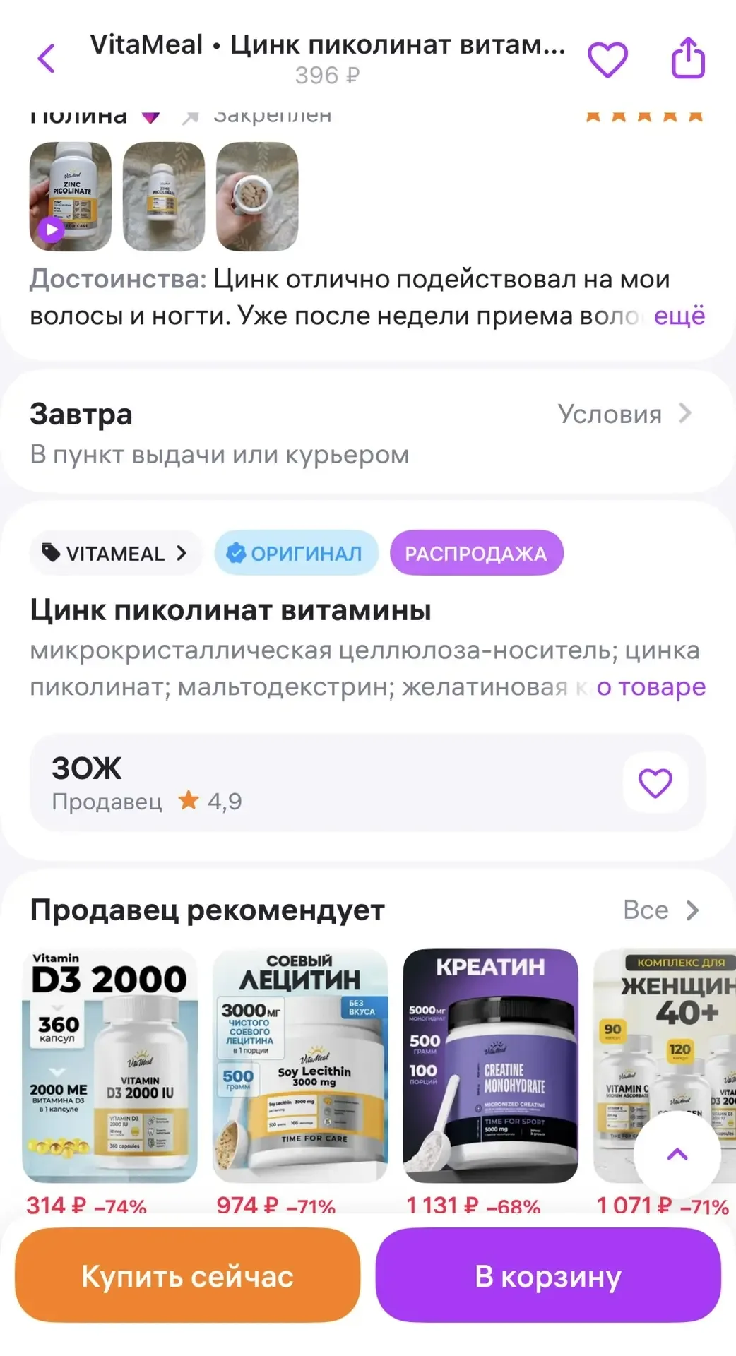 3/3. Как проверить оригинальность наших витаминов?💊 Всё очень просто! Пролистайте карточку товара до места, где указана юридическая информация о продавце. Примеры, где её найти – показали в картинках. ☀️ VitaMeal (Витамил) продаём только мы – юридическое лицо ООО "ЗОЖ". Правильный продавец в карточке товара – гарантия того, что вы приобретаете наш оригинальный продукт. Видите ЗОЖ? Значит, можете быть уверены в качестве! 🔍 Маркировка "Честный Знак" Кроме того, вы можете распаковать витамины при получении в пункте выдачи, открыть приложение "Честный знак" и просканировать наклейку с QR-кодом. П…