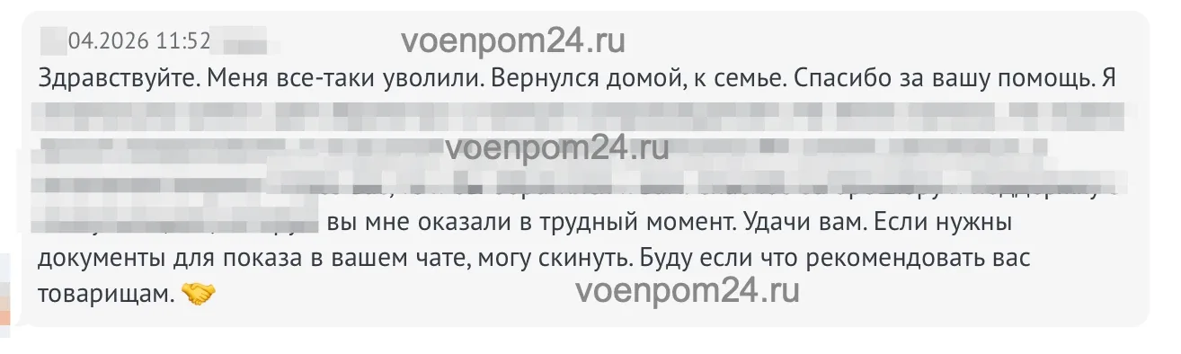 ⚡️+1 УВОЛЕННЫЙ с военной службы под нашим сопровождением ⚡️ Особенности: типичное увольнение с трех букв, со своими нюансами (без них никуда). Результат достигнут 🫡. 📆 Срок увольнения: ровно 6 мес. Уволиться с рядов ВС РФ, силовых ведомств, где предусмотрена военная служба - было всегда не просто, даже при наличии оснований. Мы работаем над увольнениям с 2021 года, знаем об этом все, ежедневно совершенствуем методику увольнения и гарантировано приводим к желаемому результату! ❗️Мы не пропагандируем и не используем уклонение от исполнения обязанностей военной службы как средство увольнения, та…