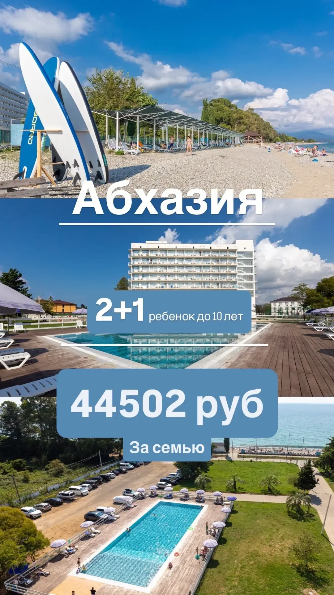 🔥ШОК ЦЕНА🔥 Начинай сезон ярко ☀️ Ласковое солнце с запахом моря в перемешку с хвойно-сосновым воздухом … Абхазия ☺️ Всегда такая приветливая и гостеприимная для всех, снова предлагает нам прекрасные варианты семейного отдыха 🧑🧑🧒 📅 9.06 по 16.06 💸 44 502 руб за семью 2+1 (ребенок до 10 лет) Вас ждет ⬇️ 🔹удобное расположение отеля 🔹большая благоустроенная территория 🔹взрослая и детская аннимация 🔹в 5 минутах мелко-галечный пляж 🏝️ В тур входит 🔥 🔸Проживание в отеле 🔸трех разовое питание по системе "шведский стол" 🔸игровой комплекс для детей 🔸открытый бассейн с подогревом 🔸зона отдыха с шезлон…