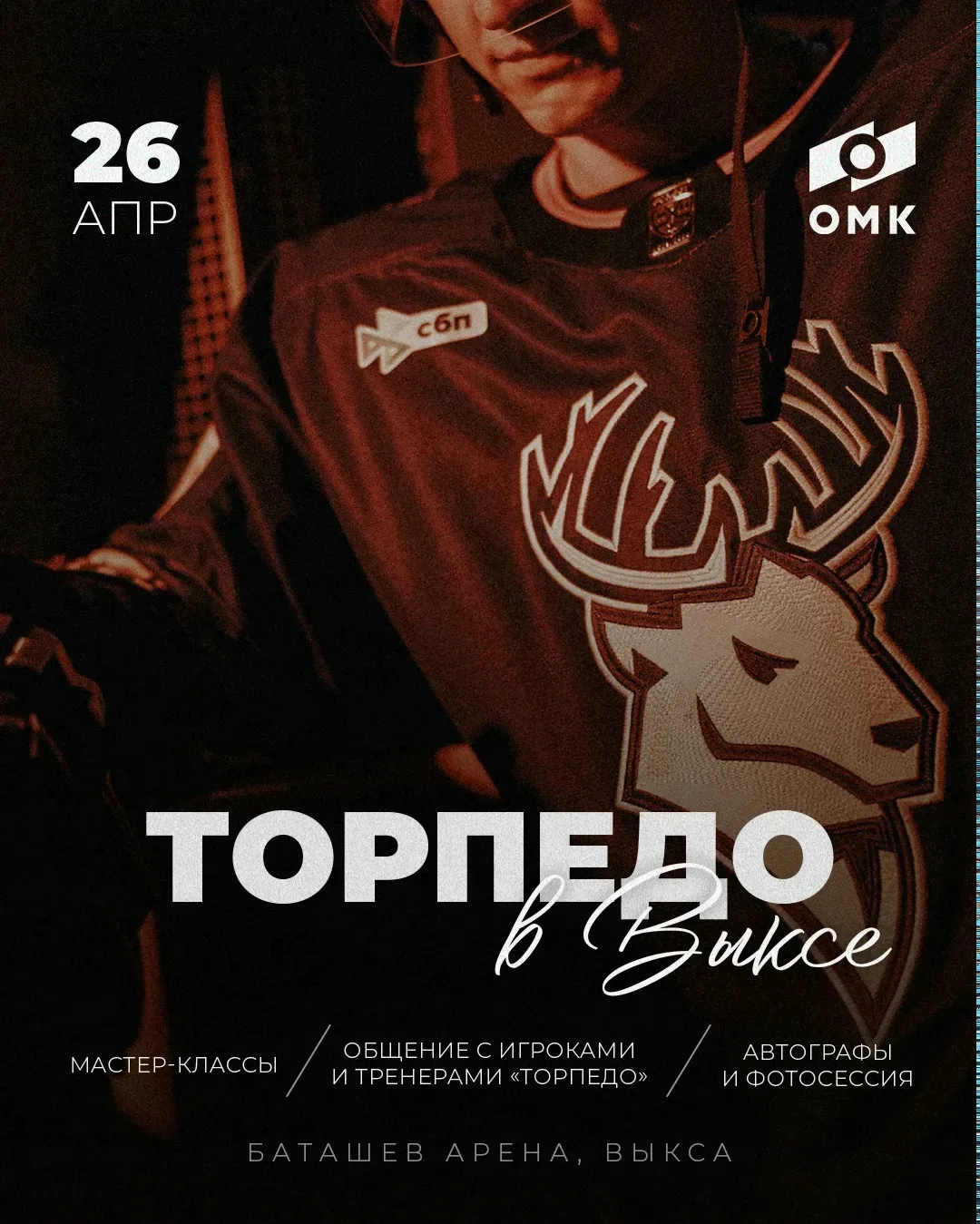 🏒 «Торпедо» в Выксе 26 апреля на «Баташев Арене» — открытая встреча с игроками «Торпедо». Владимир Ткачев, Егор Соколов и Владислав Фирстов вместе с тренерами СДЮШОР проведут мастер-класс для воспитанников детской спортивной школы. Посмотреть тренировку с трибун может любой желающий — вход свободный. После тренировки можно будет пообщаться с игроками, взять автограф и сделать фото. На встрече разыграют три джерси с автографами игроков — их получат авторы лучших вопросов хоккеистам. Программа: • 11:00–12:45 — ледовая тренировка • 13:15 — занятие по ОФП • 14:00 — автограф-сессия 📹 Как это было …