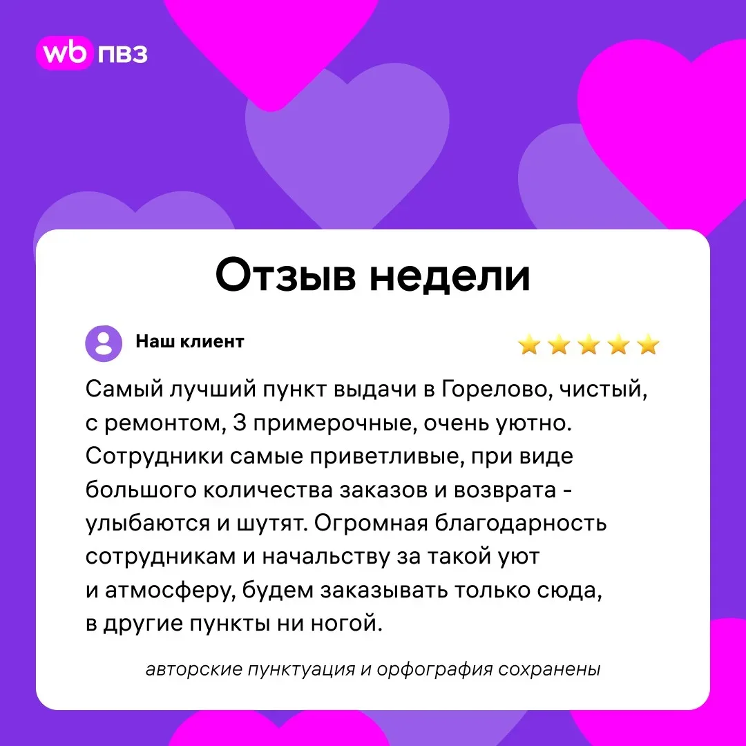 Новостной канал для менеджеров ПВЗ Wildberries. Приглашаем ознакомиться с публикациями. Информация актуальна для менеджеров, работающих в программе WB ПВЗ. Регистрация в Роскомнадзоре: № 4963505157