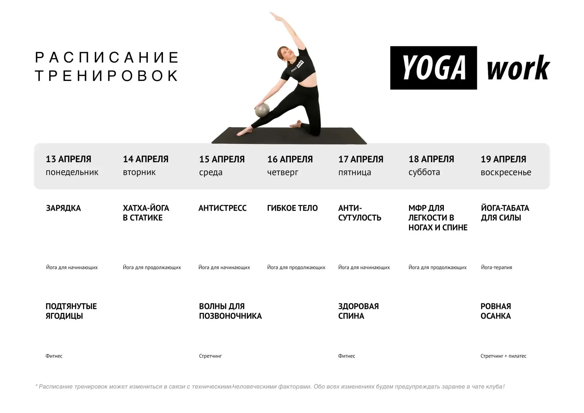 🗓 Неделя, которая починит спину и вернёт рельефное тело к лету Если чувствуете, что тело «рассыпалось» после зимы и в нем нет лёгкости, нет тонуса, спина не держит, значит пора возвращать тренировки в свою рутину! ПН — зарядка + подтянутые ягодицы Разогреваемся, включаем мышцы и сразу добавляем работу на ягодицы — чтобы тело стало более подтянутым уже с начала недели. ВТ — хатха-йога в статике Замедляемся и учимся отстраивать асаны. Спокойная, но глубокая работа: появляется сила, выносливость и ощущение опоры в себе. СР — антистресс + волны для позвоночника Снимаем напряжение, которое накопил…