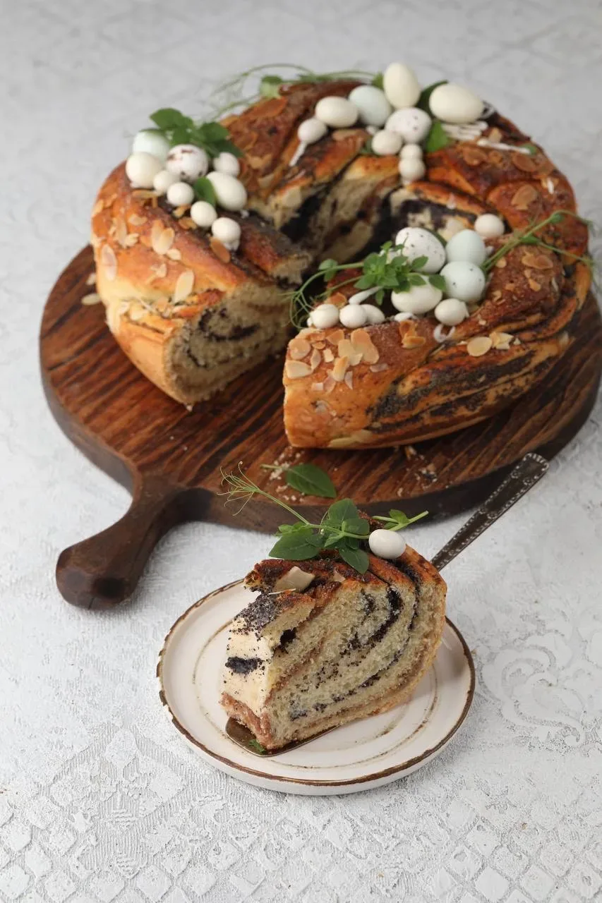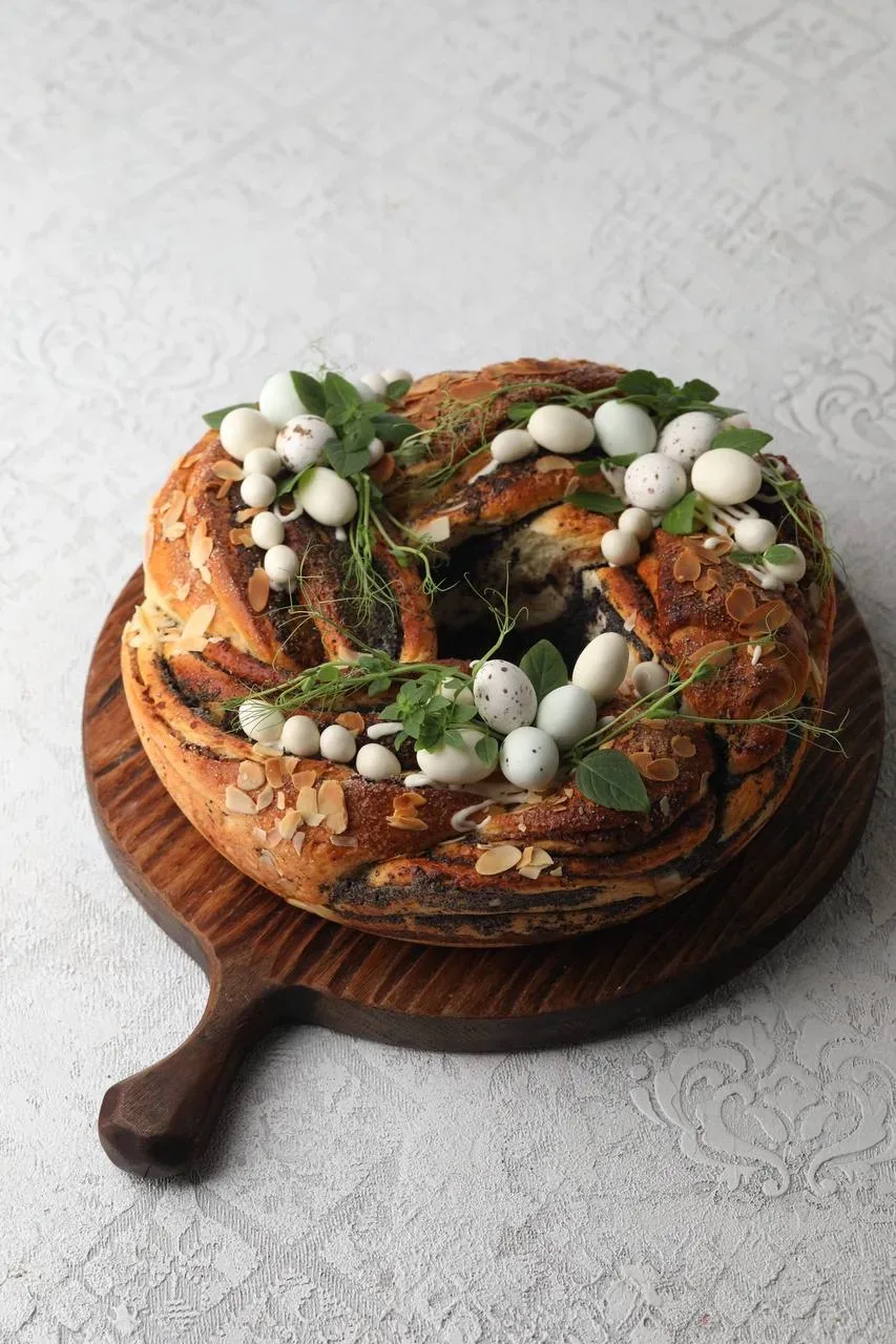 Такая выпечка прекрасна всегда🤍 «Плетенка» с маковой начинкой и курагой с орехами - это что-то невероятное. Если добавить лёгкий пасхальный декор в виде яиц и веточек, то получится очень празднично и мило, согласны?☺️ ОН Шикарен. Готовить надо обязательно 👌 Тесто фантастически нежное, пушистое, прекрасно в работе, ароматное. Его можно использовать как основу для любого рулета, «косички», булочек, «веночков». Можно сделать начинку маковую, фруктовую, шоколадную или такую ароматную, необычную и пикантную, как в этом рецепте. Пирог получается большой. Смело можно разделить на два. Хотя он хорошо…