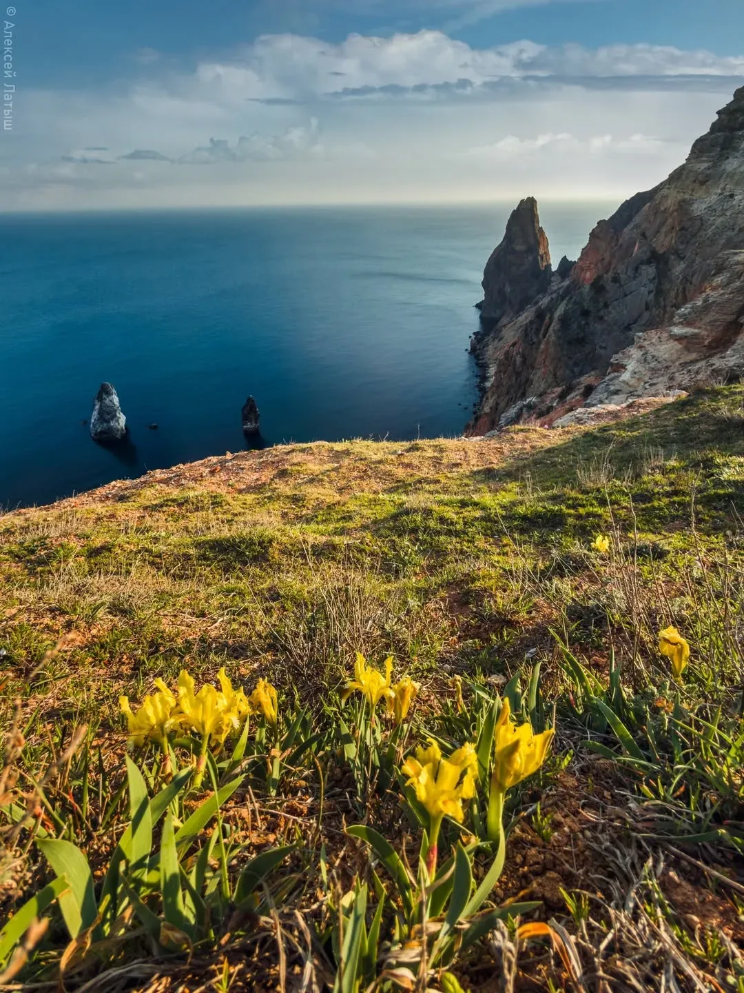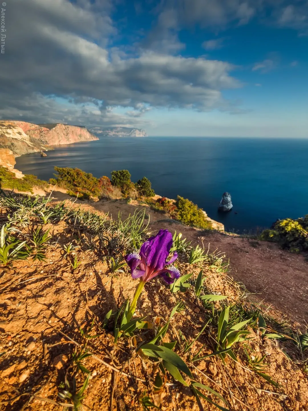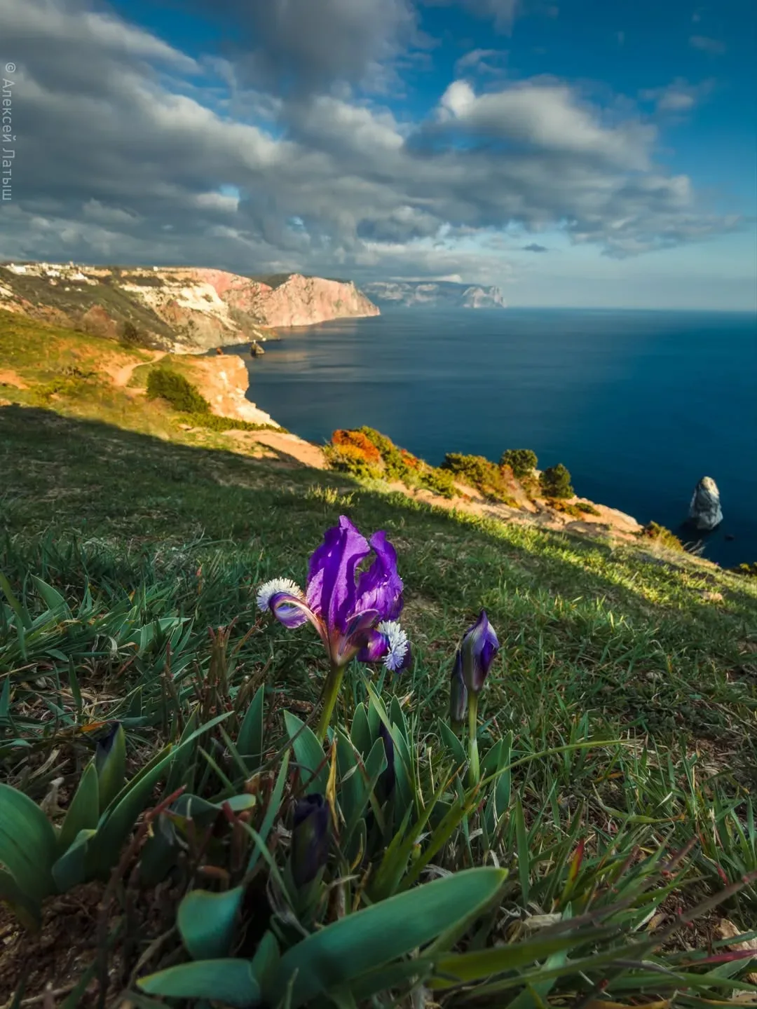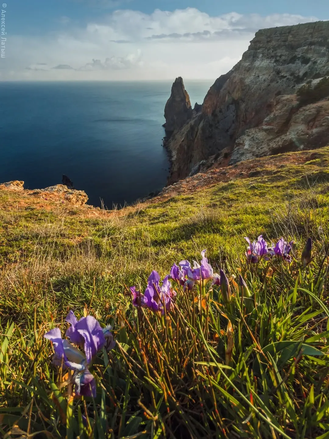 🪻 Фиолент в цветении ирисов Весной склоны мыса Фиолент покрываются россыпью диких ирисов. Яркие фиолетовые цветы пробиваются сквозь камни и сухую траву, особенно резко выделяясь на фоне тёмных скал и моря внизу. Первые бутоны появляются в конце марта, пик приходится на вторую половину апреля — всего на пару недель склон превращается в цветущий ковёр. Здесь растёт краснокнижный ирис карликовый — редкий степной вид, который уязвим к любому вмешательству. Сорванные цветы не дадут семян, и с каждым годом таких полян может становиться меньше. Лучшее решение — идти по тропе, не сходить со склонов и…
