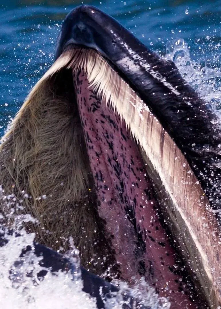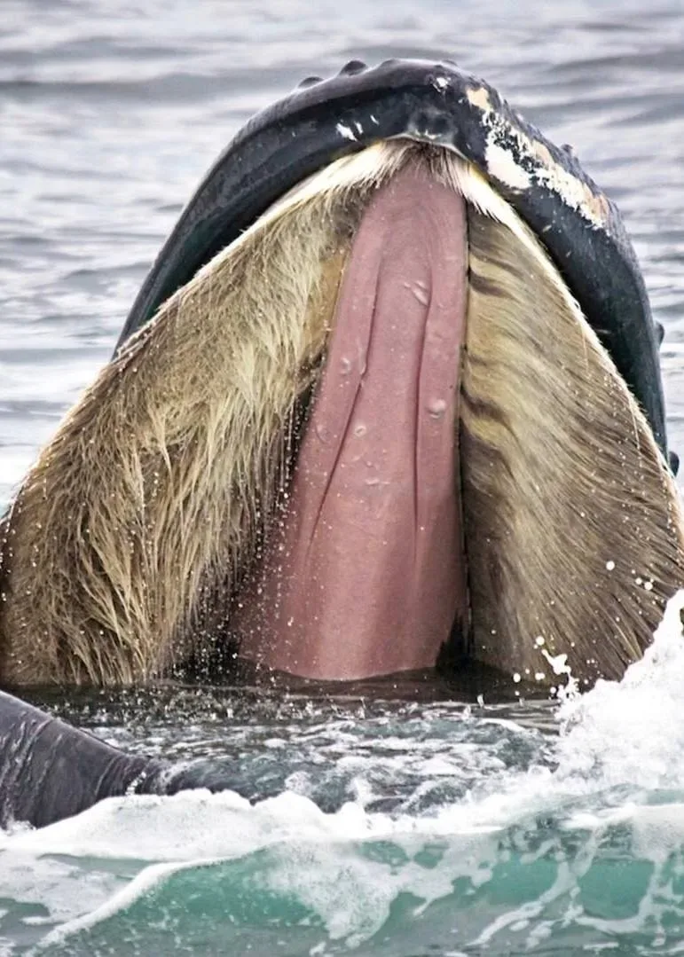 🐋 Китовый ус и способ питания гигантов океана У усатых китов нет зубов. Вместо них — китовый ус, роговые пластины из кератина, того же материала, что и ногти и волосы человека. По краям пластин — густая бахрома, образующая природный фильтр. Так питаются, например, синие и горбатые киты. Они не охотятся за крупной добычей, а собирают пищу прямо из воды. Кит раскрывает пасть и зачерпывает огромный объём воды — десятки тысяч литров за раз. Затем с помощью языка и движения челюстей выталкивает воду наружу. Она проходит через китовый ус, а планктон и мелкая рыба задерживаются внутри фильтра. 🐳 Кол…